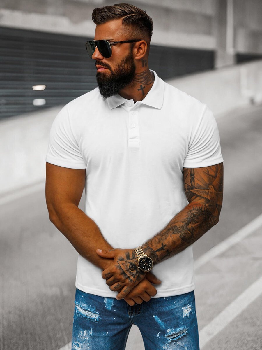 Koszulka męska polo biała OZONEE JS/8T80/1Z - Twoja elegancja w wygodnym wydaniu