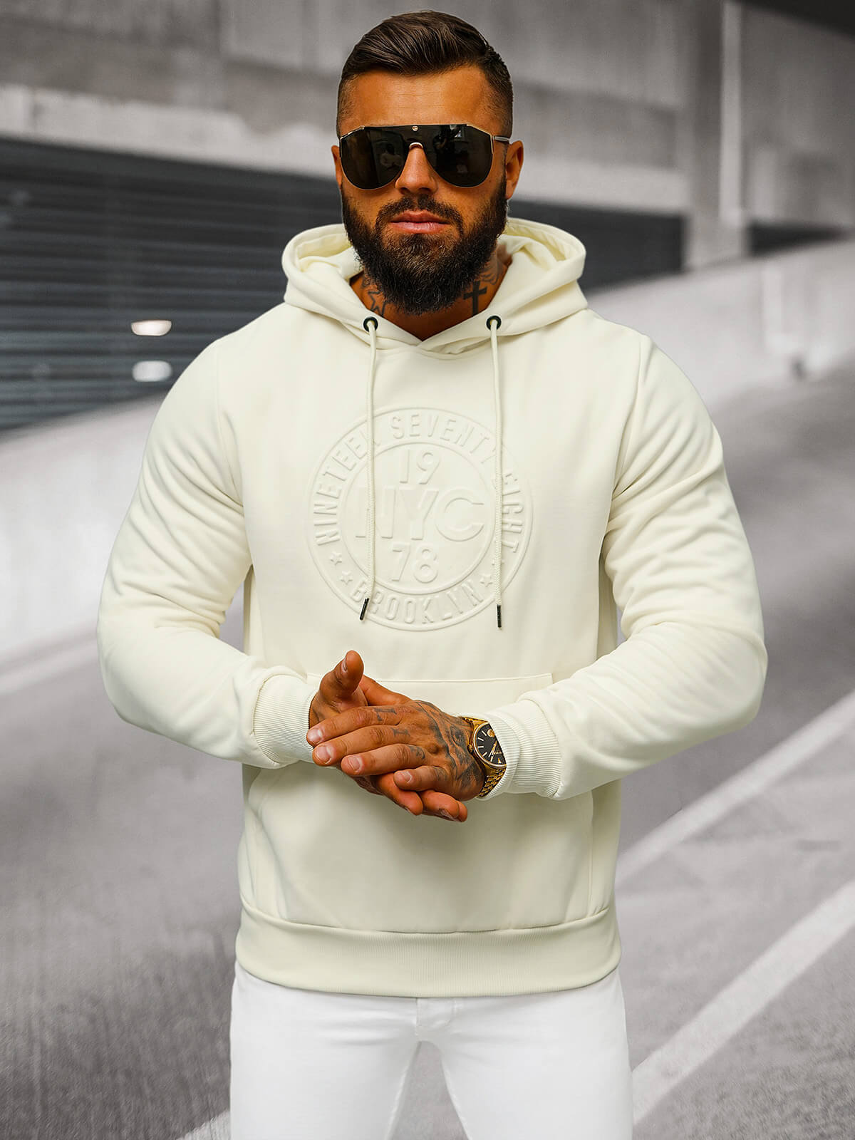 Styl i komfort w jednym - Bluza z kapturem męska ecru OZONEE JS/27B6510/155