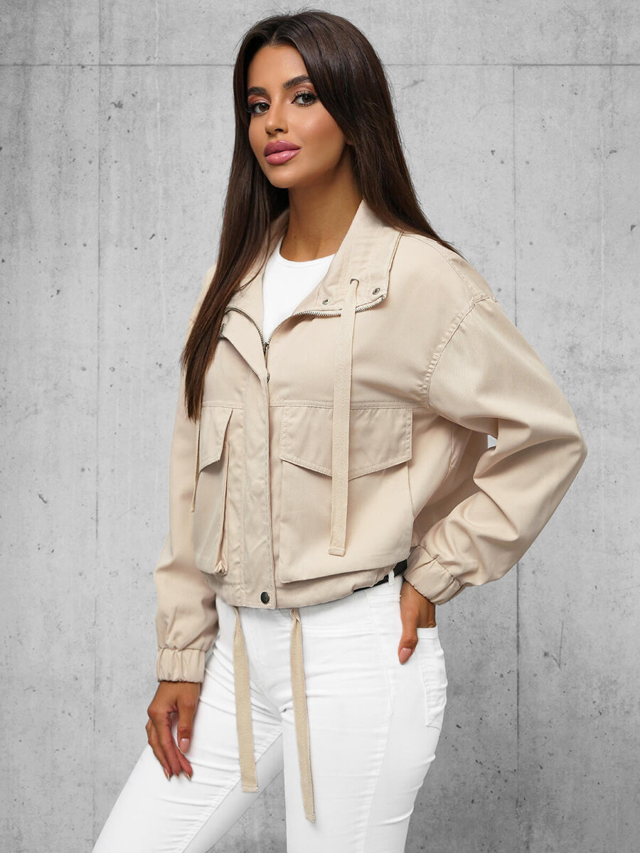 Elegancka i praktyczna - Kurtka damska przejściowa beżowa OZONEE O/G118