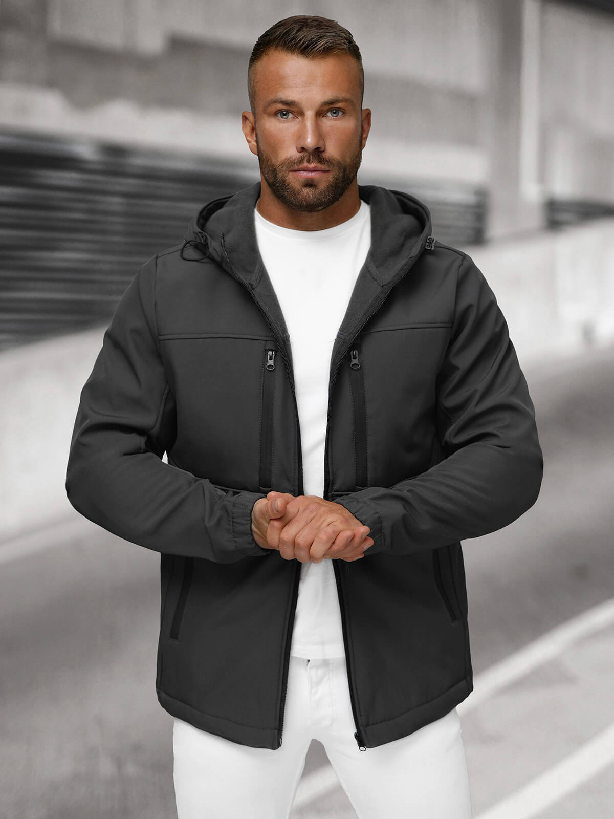 Kurtka softshell męska z kapturem grafitowa OZONEE JS/27B6525/5 to idealny wybór na co dzień, do szkoły, pracy czy na spacer. Doskonale sprawdzi się również podczas weekendowych wypadów za miasto. Można ją łączyć zarówno z casualowymi jeansami, jak i sportowymi spodniami. Grafitowy kolor i uniwersalny krój sprawiają, że kurtka pasuje do wielu stylizacji, podkreślając męski charakter i dodając elegancji każdej kreacji.