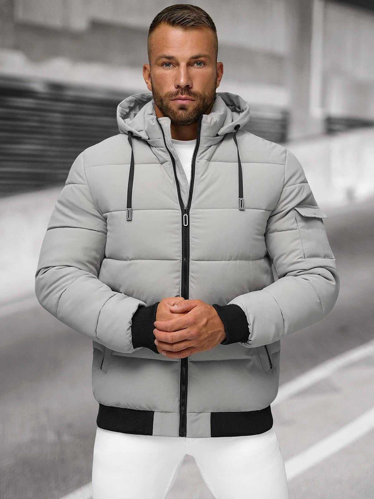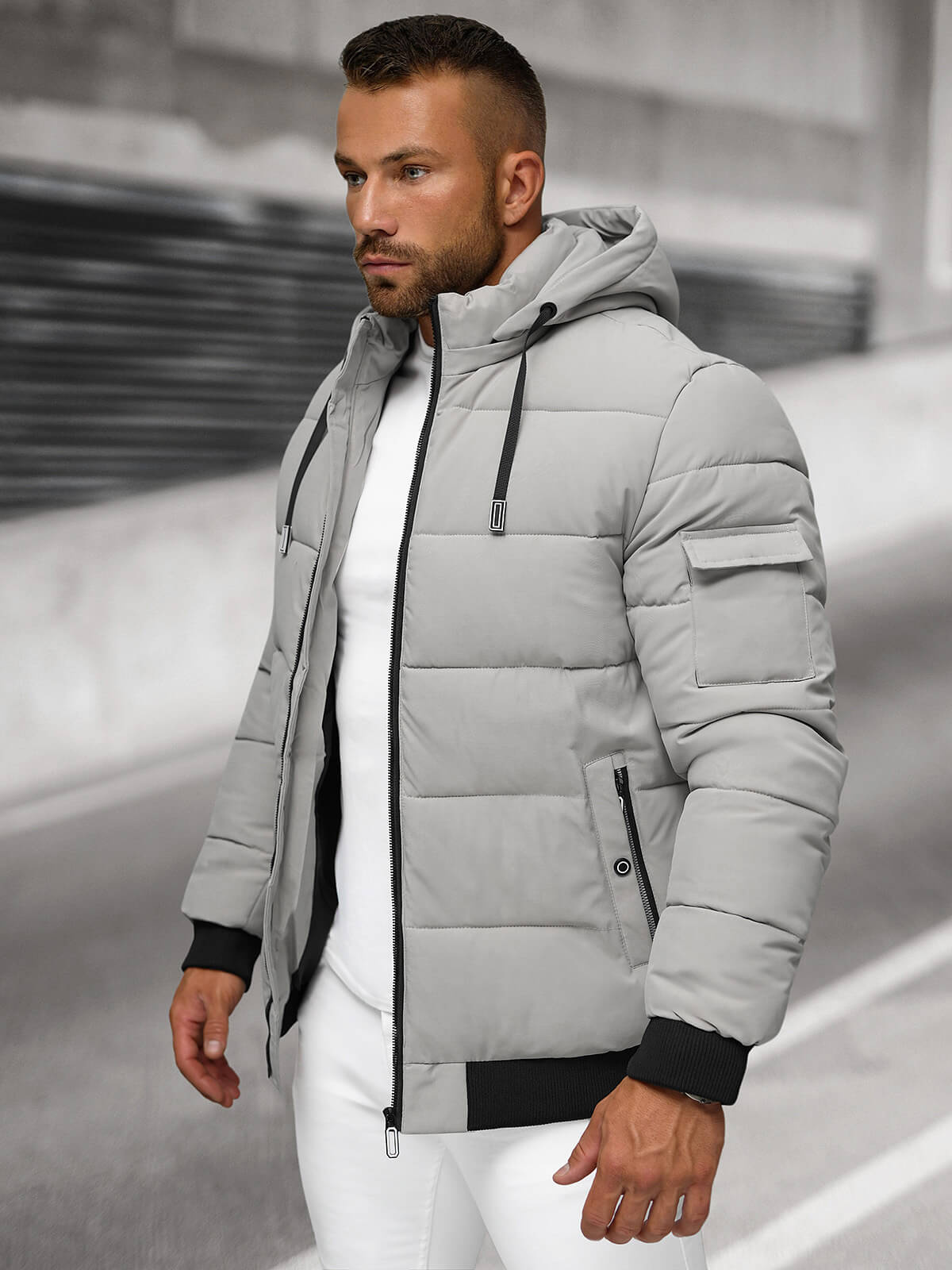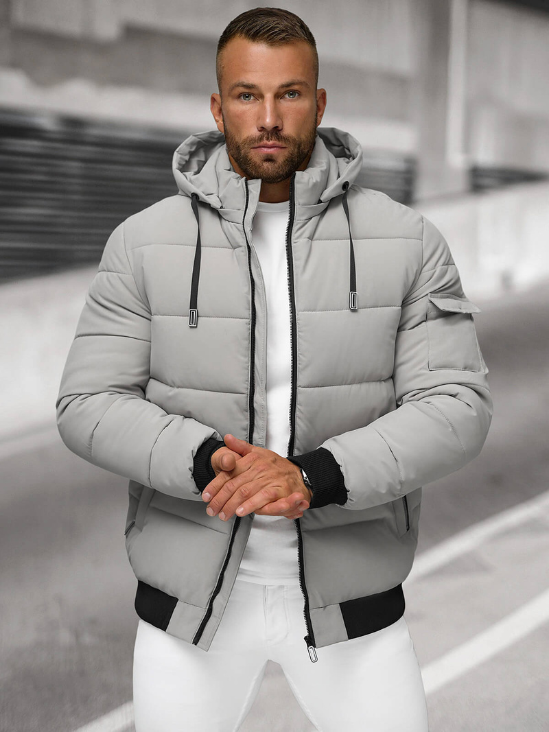 Nowoczesna i stylowa kurtka męska pikowana szara OZONEE JS/31M5006