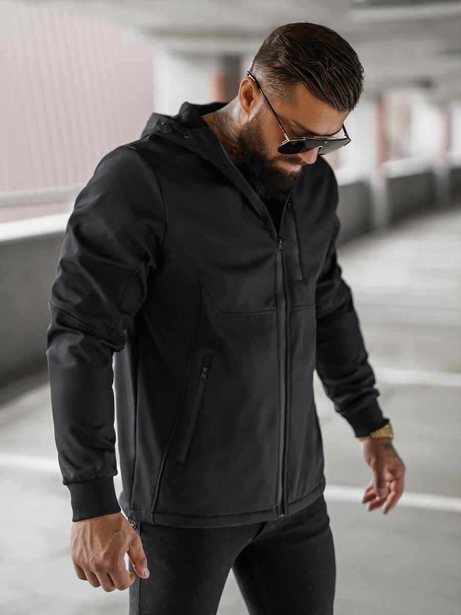 Nowoczesna elegancja z nutą sportowego komfortu - Kurtka softshell męska z kapturem czarna OZONEE JS/27B6529/3