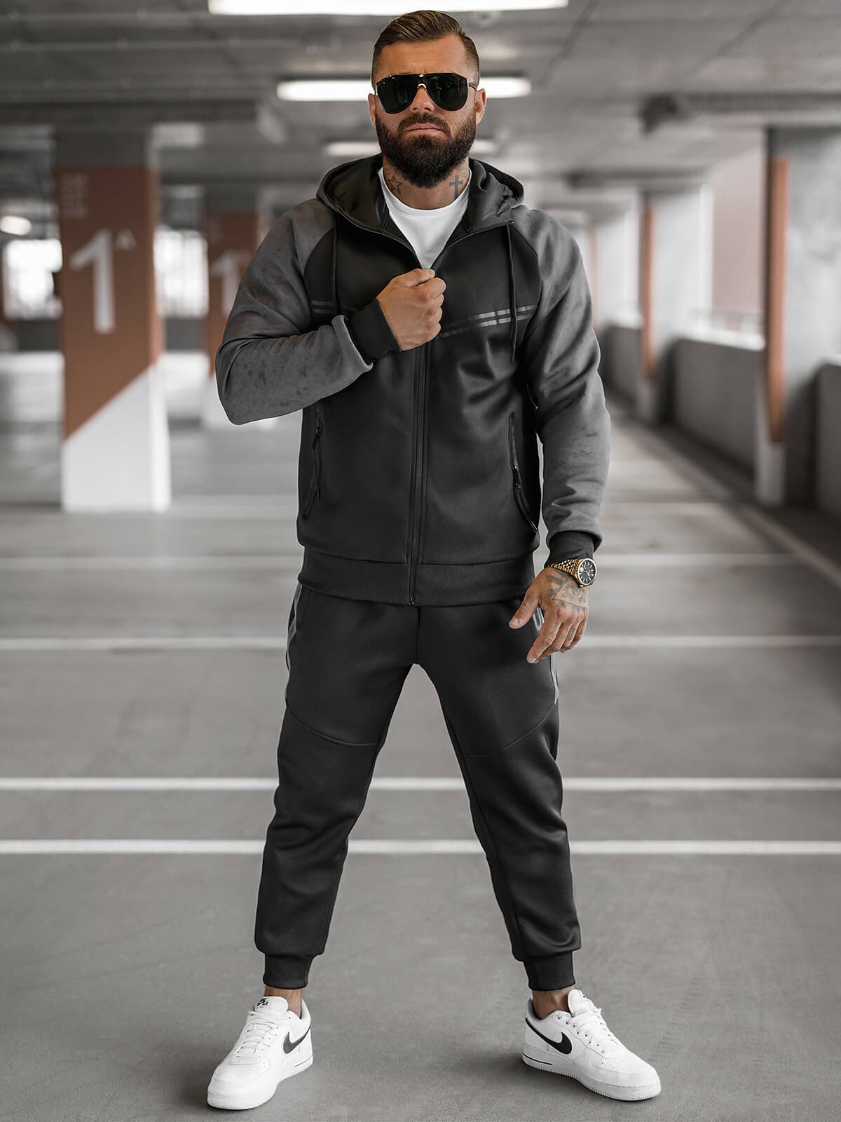Przejmij kontrolę nad swoim stylem z Kompletem dresowym męskim czarno-grafitowym OZONEE JS/27C6504/5