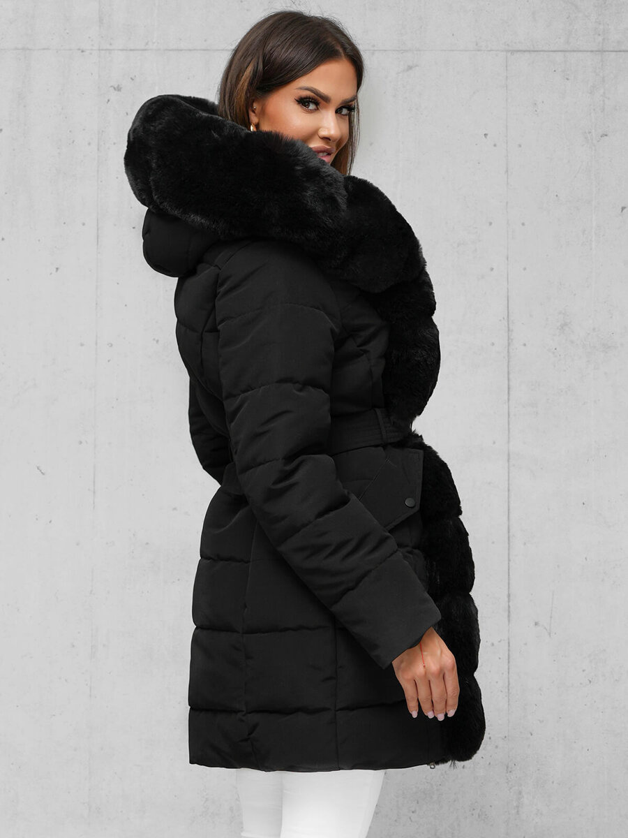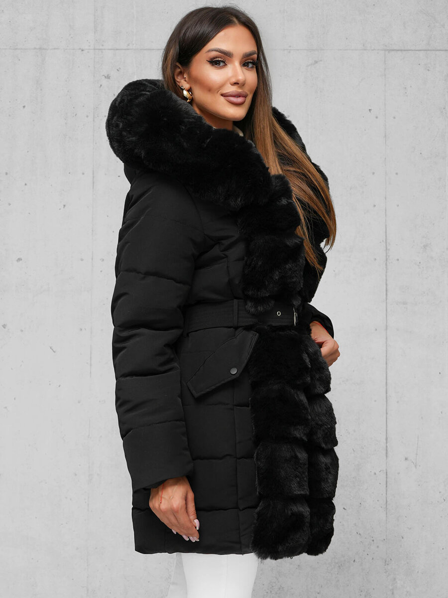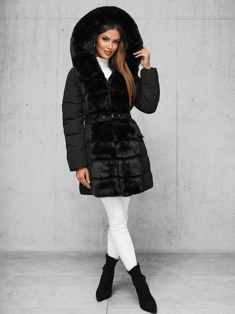 Stylowa i praktyczna kurtka zimowa damska długa z futerkiem czarna OZONEE JS/11Z8096