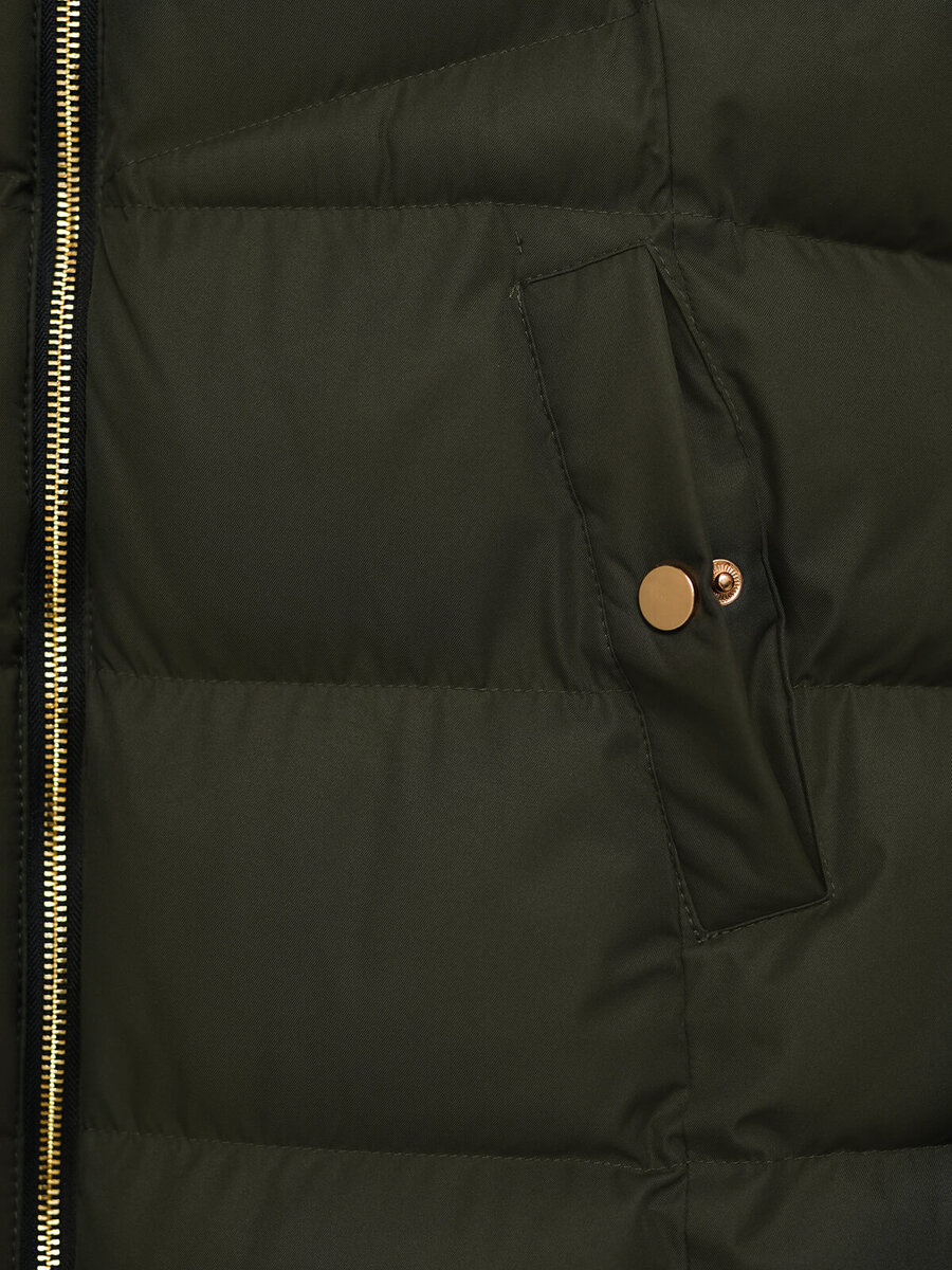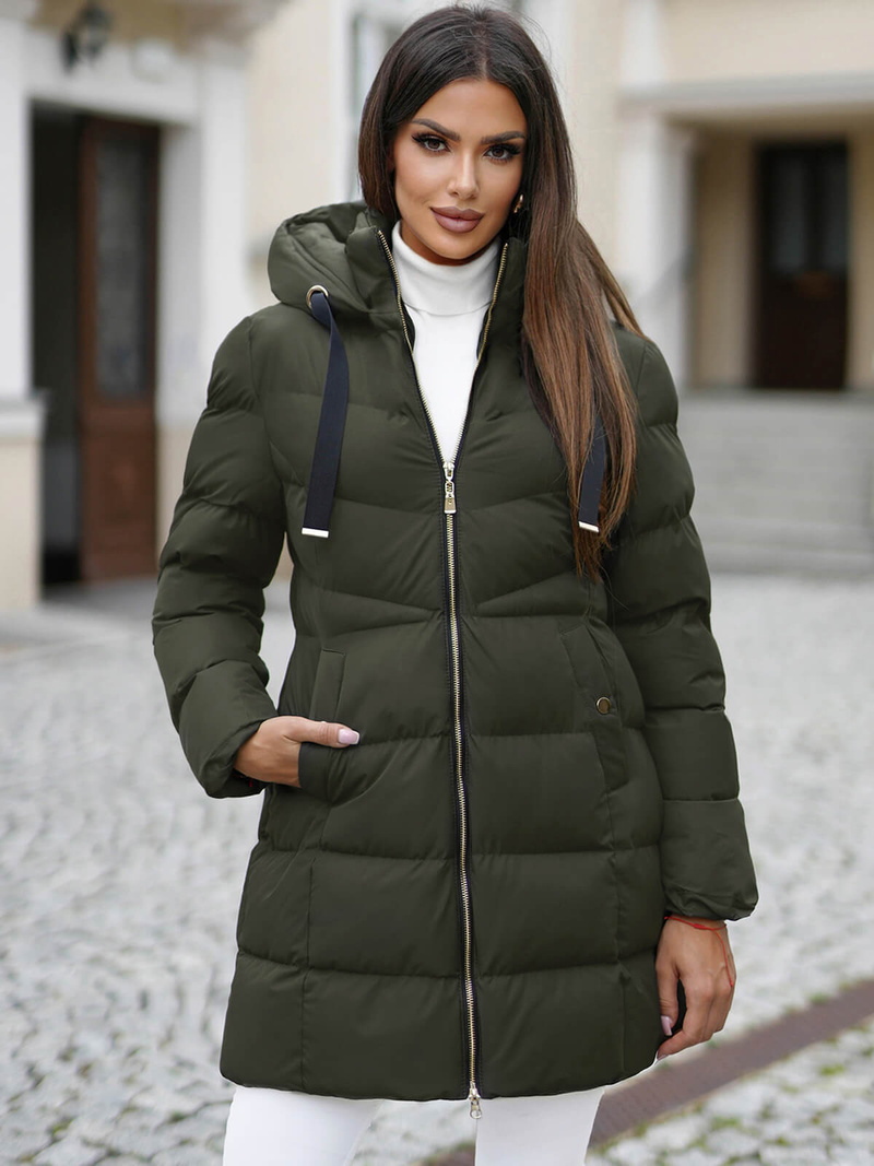 BUFOR Kurtka zimowa damska długa pikowana ciemno-zielona OZONEE JS/5M3231/136 - niezbędny element zimowej garderoby