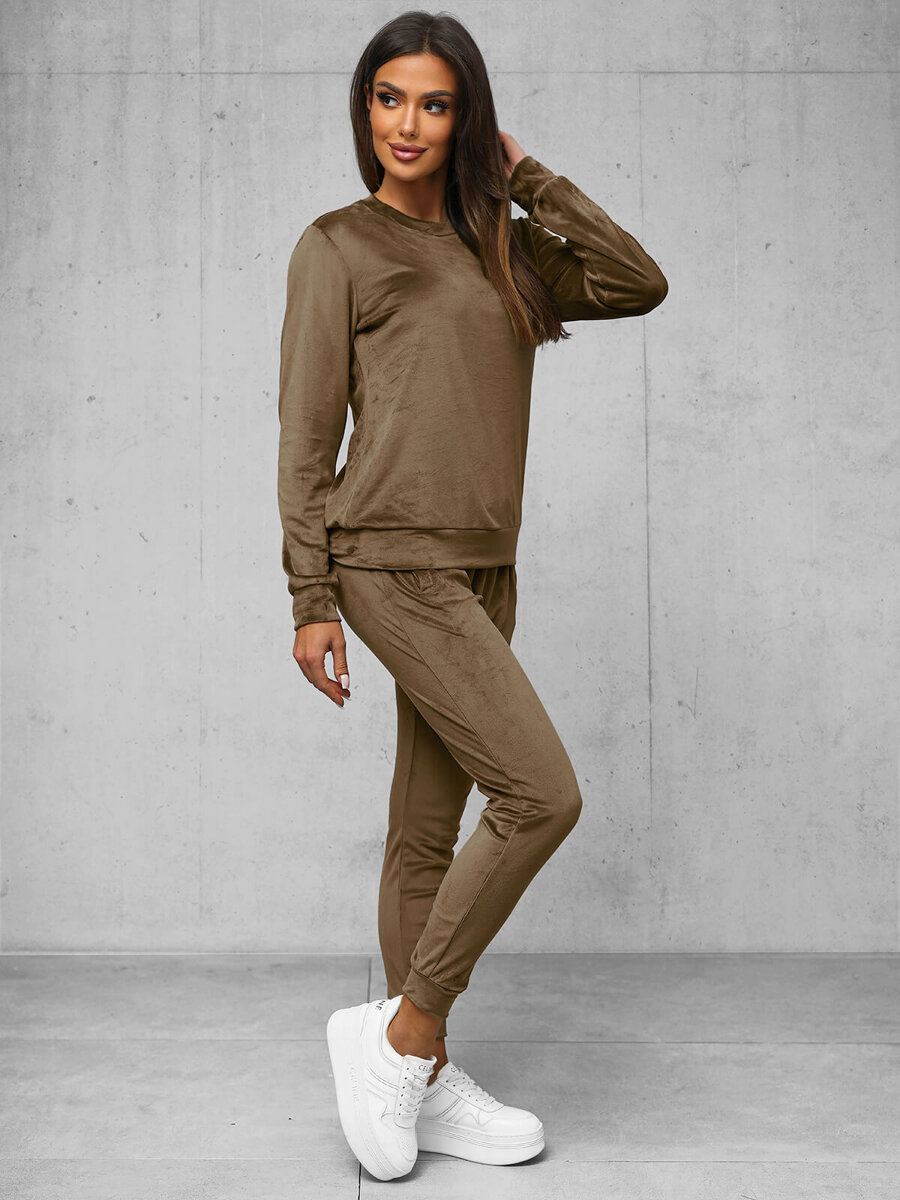 Komfort i styl w jednym - Komplet dresowy damski welurowy jasno-brązowy OZONEE O/8C1173/162Z