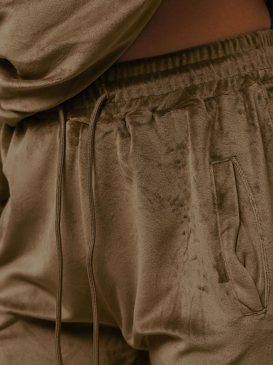 Komplet dresowy damski welurowy jasno-brązowy OZONEE O/8C1175/162Z - elegancja spotyka komfort