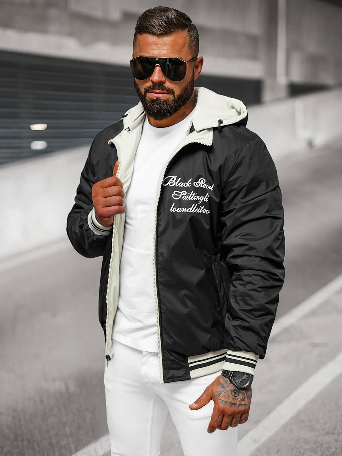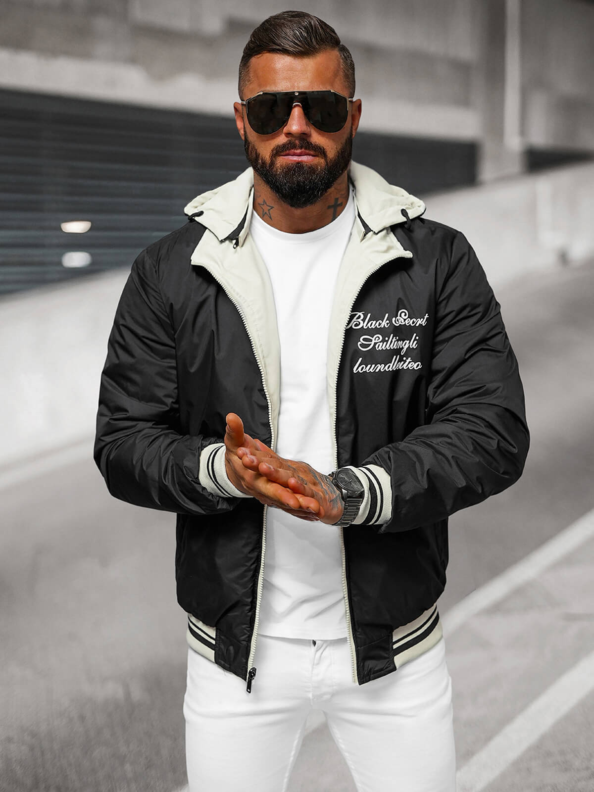 Styl i funkcjonalność w jednym - Kurtka męska dwustronna czarna/ecru OZONEE JS/84M3038/280