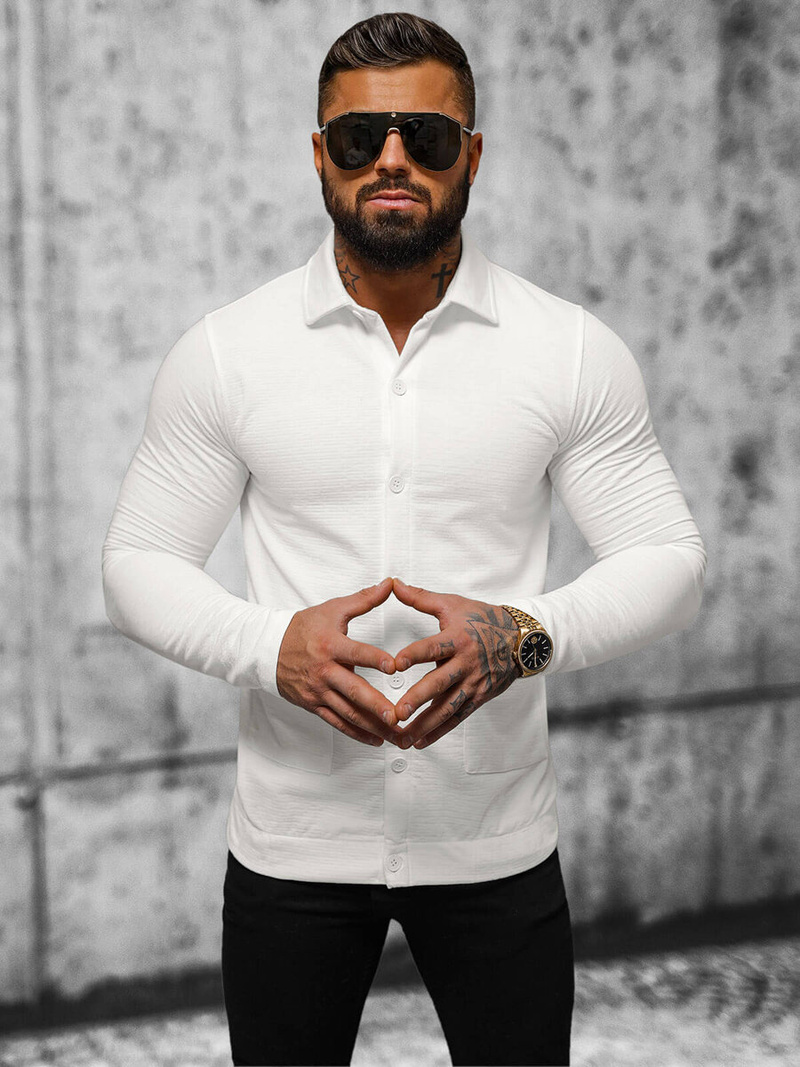 Bluza męska z kołnierzykiem ecru OZONEE O/TB2264 to uniwersalny element garderoby, który sprawdzi się zarówno na co dzień, jak i na specjalne okazje. Doskonale komponuje się z jeansami, chinosami czy spodniami typu jogger. Można ją nosić zarówno do sportowych butów, jak i eleganckich mokasynów. Bluza OZONEE O/TB2264 to gwarancja stylu i komfortu w każdej sytuacji.