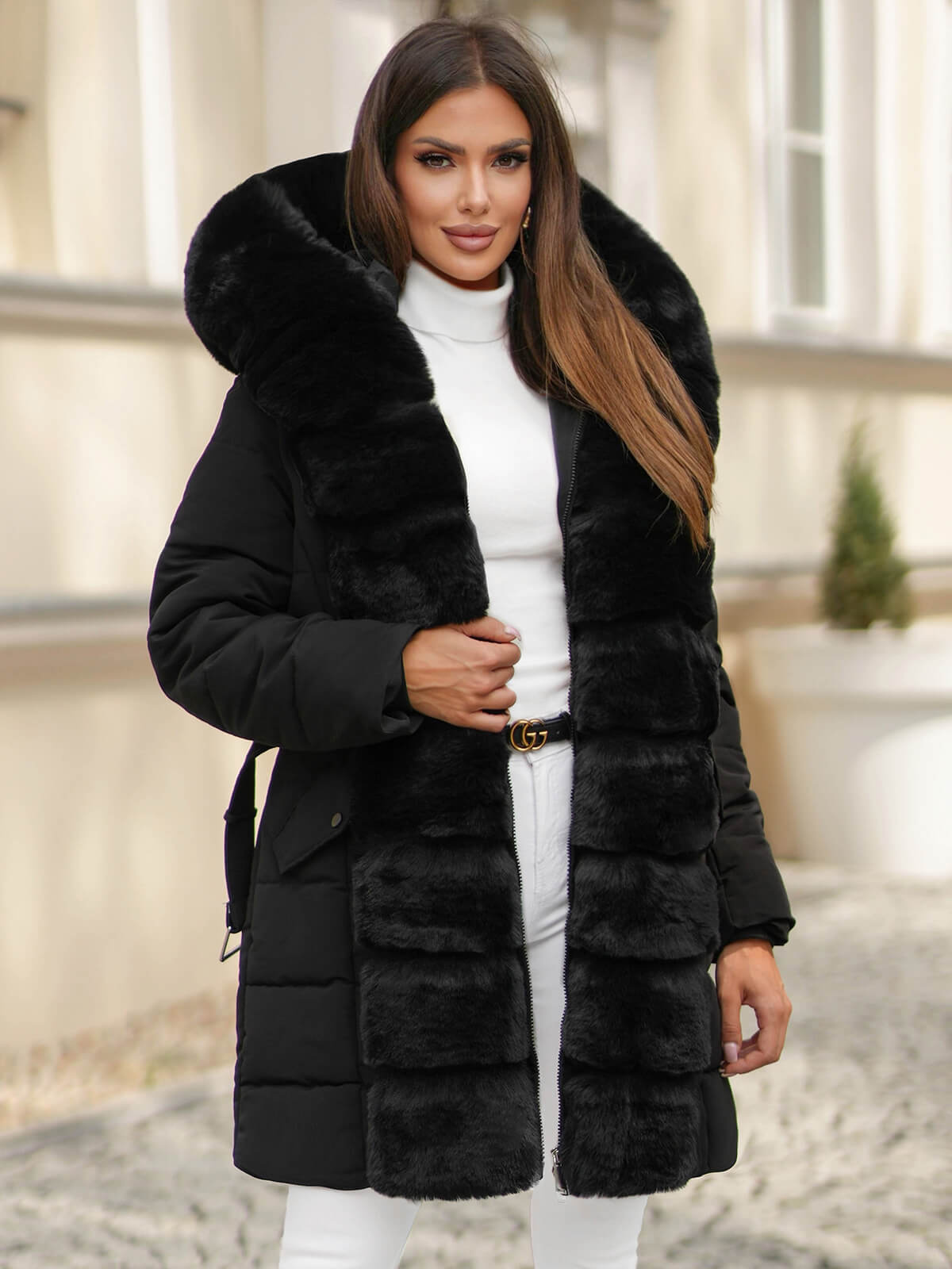 Stylowa i praktyczna kurtka zimowa damska długa z futerkiem czarna OZONEE JS/11Z8096