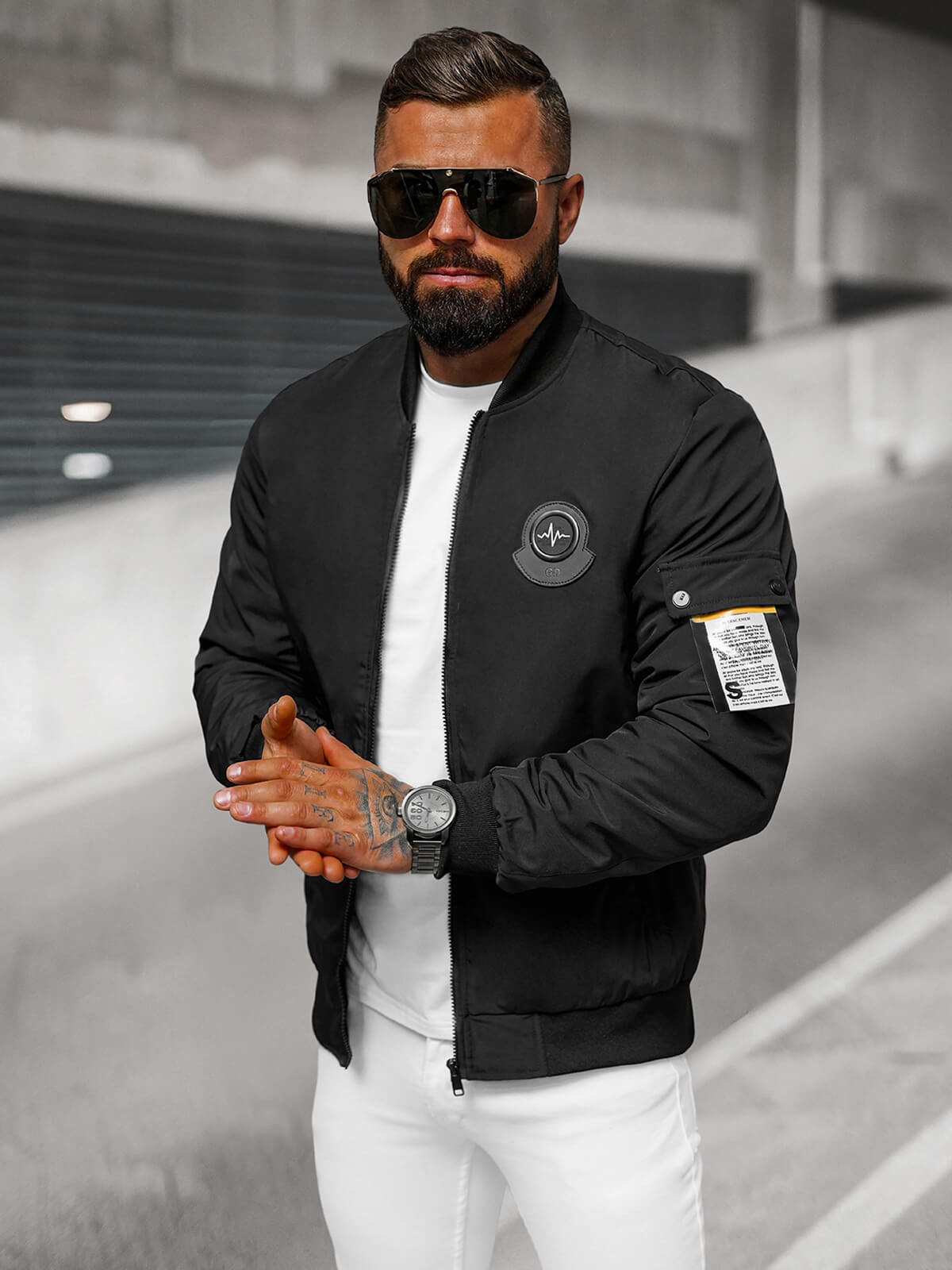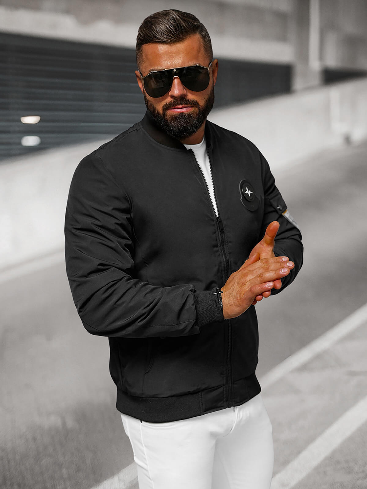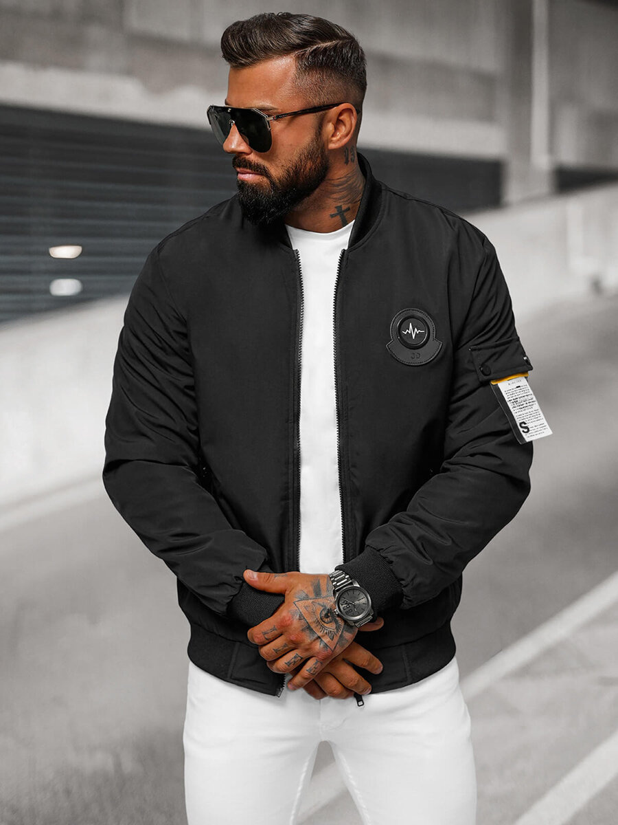Stylowy dodatek do męskiej garderoby - Kurtka męska bomberka czarna OZONEE JS/84M3037/392