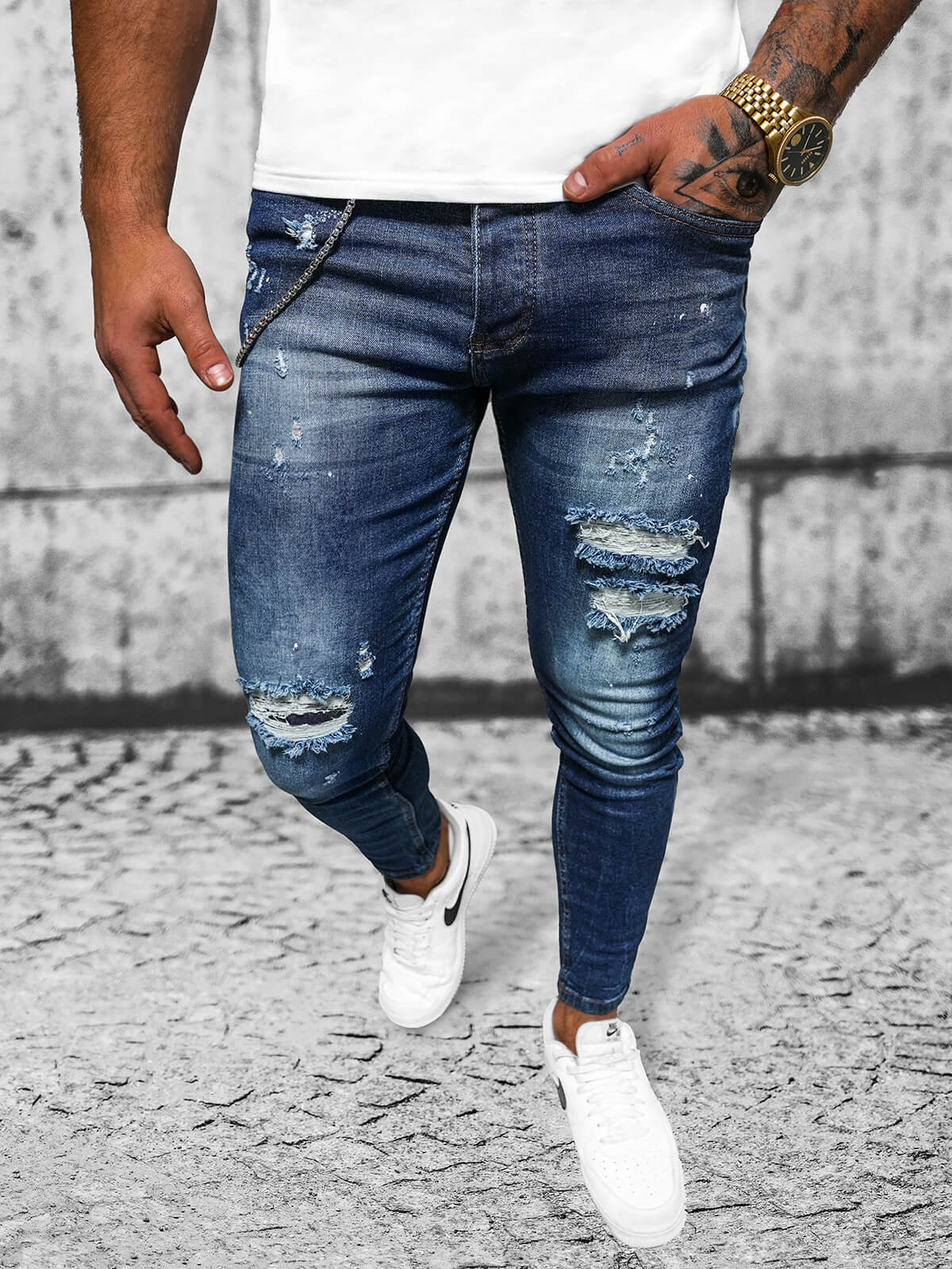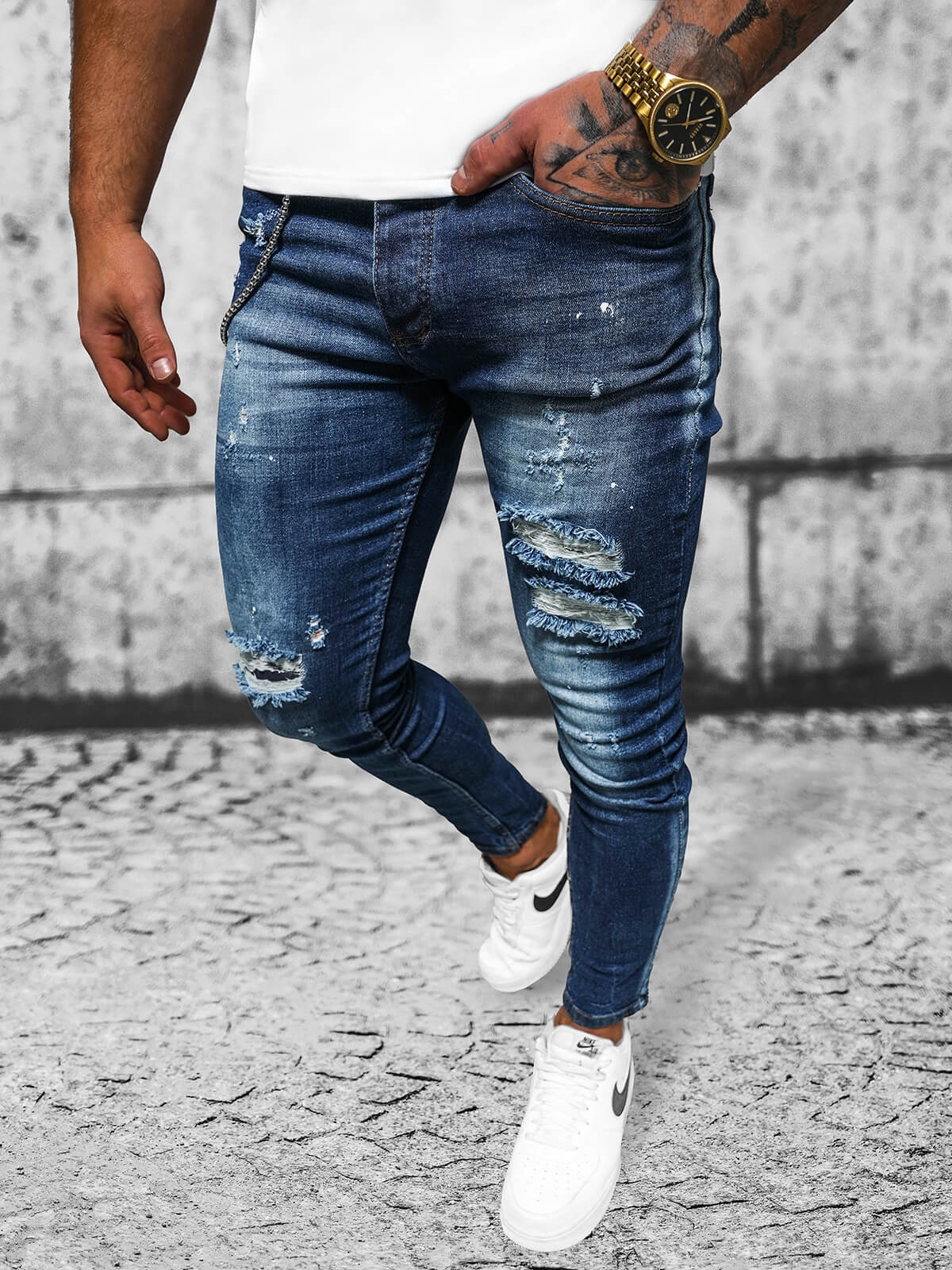 Styl i komfort w jednym - Spodnie jeansowe męskie ciemnoniebieskie OZONEE O/MB462