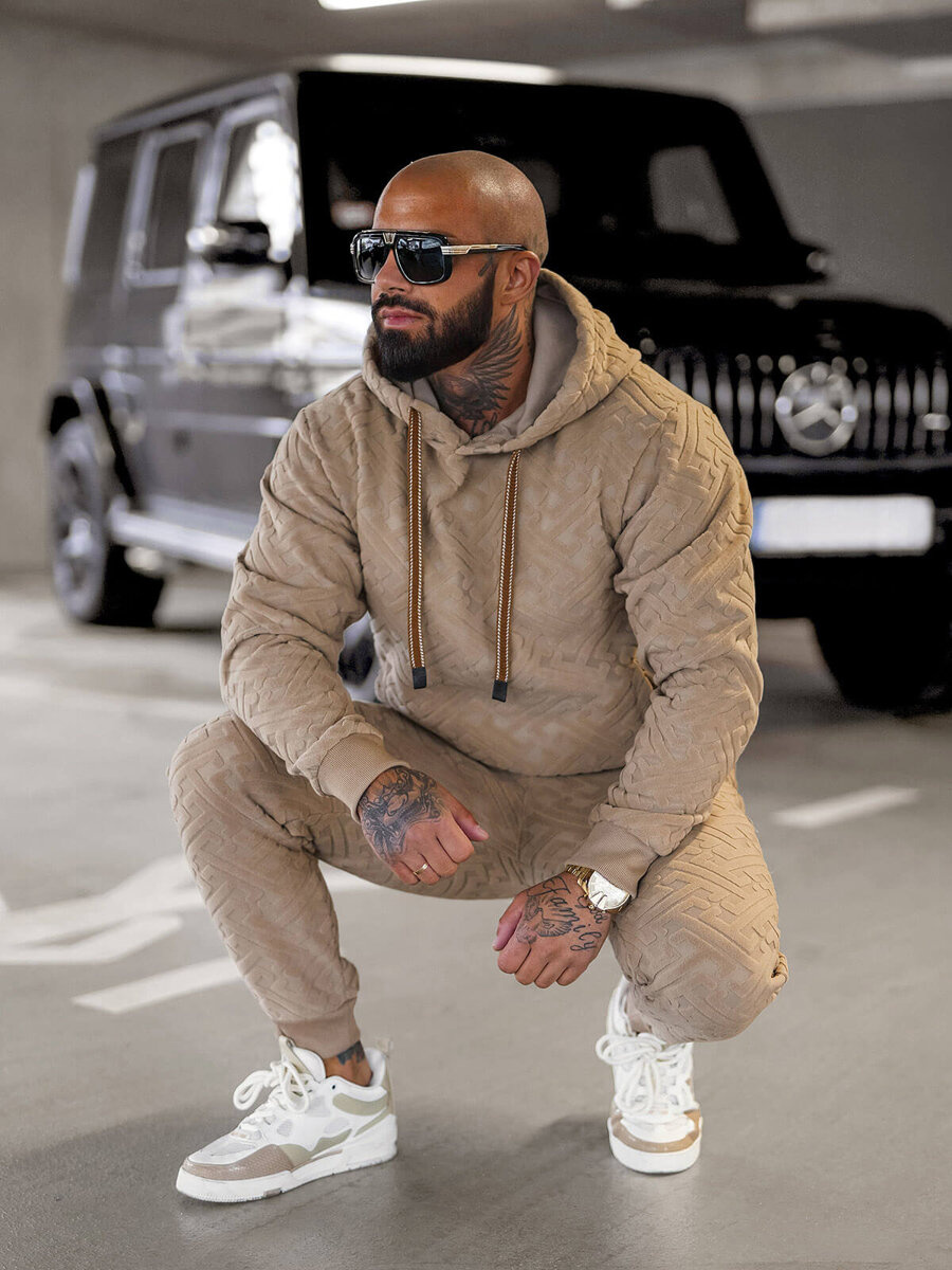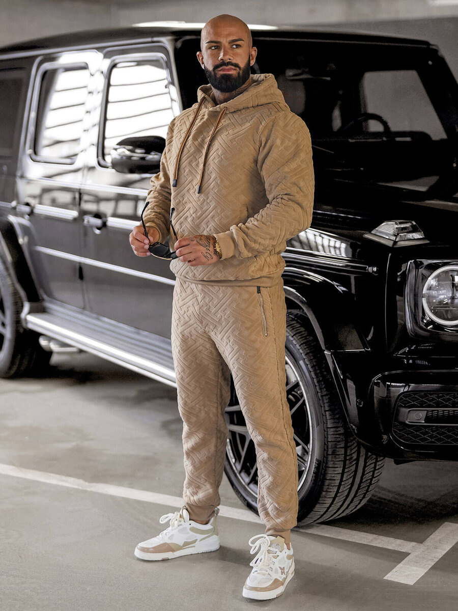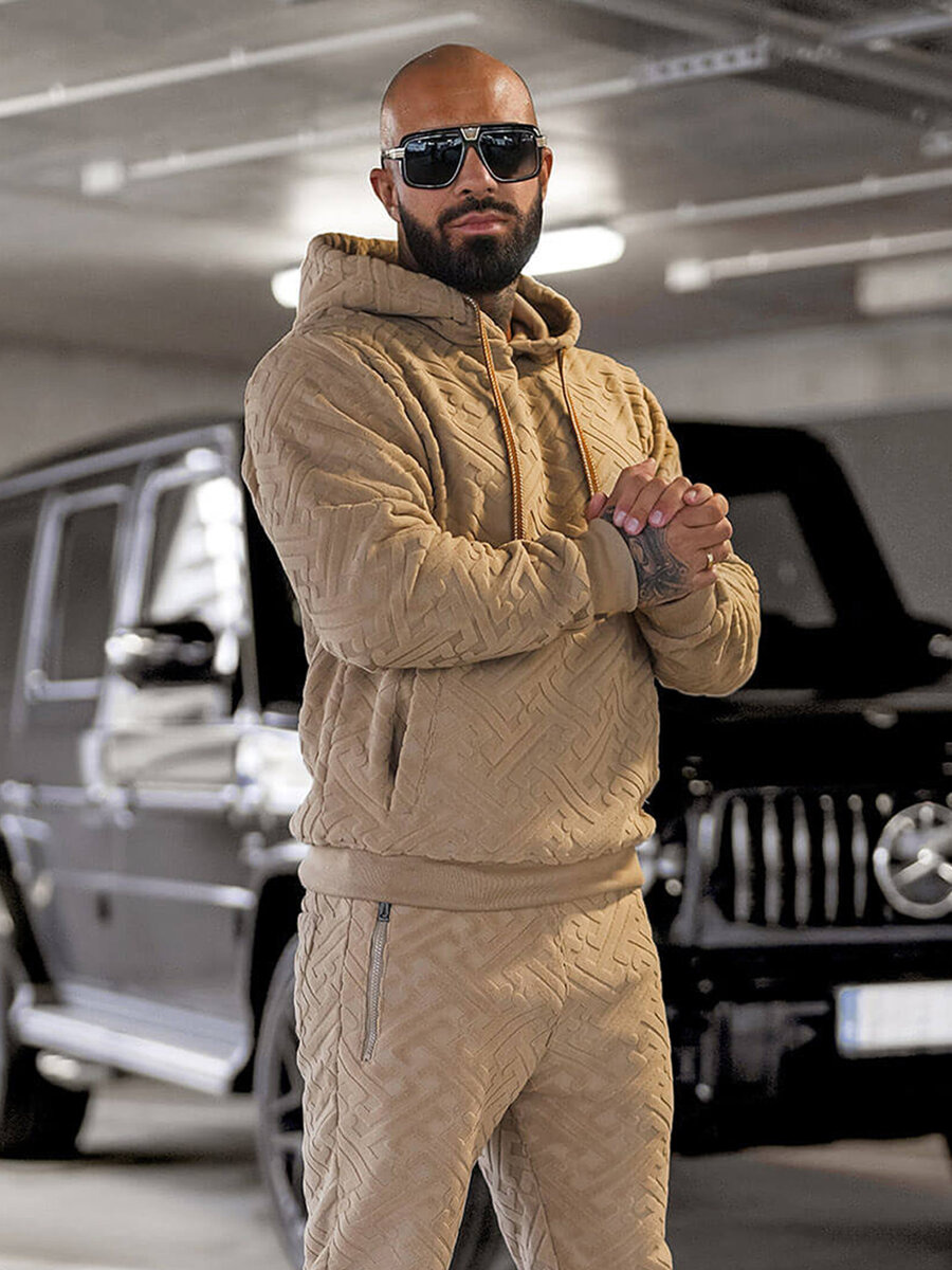 - KOMPLET DRESOWY MĘSKI SKŁADAJĄCY SIĘ Z BLUZY Z KAPTUREM ORAZ SPODNI Z KIESZENIAMI PO BOKACH