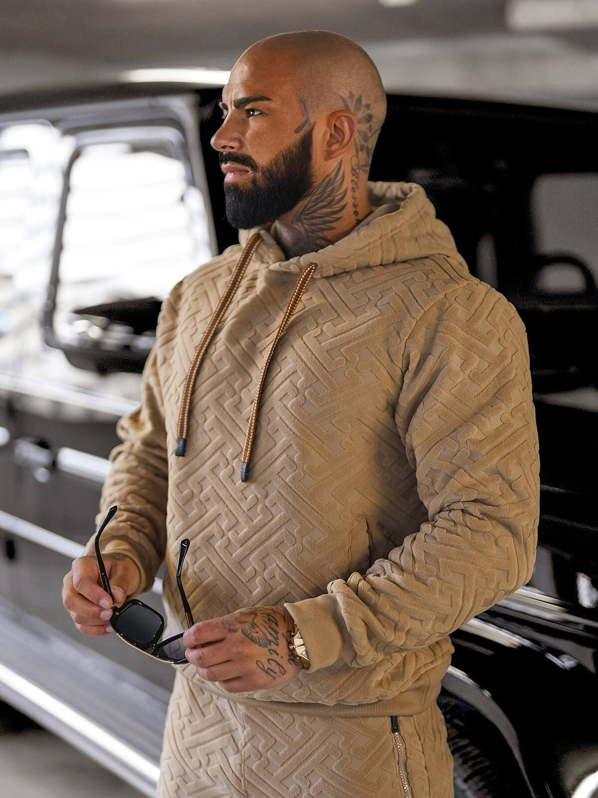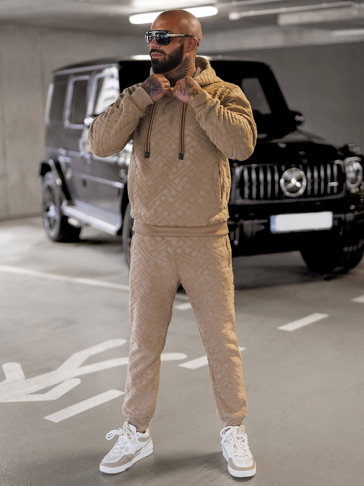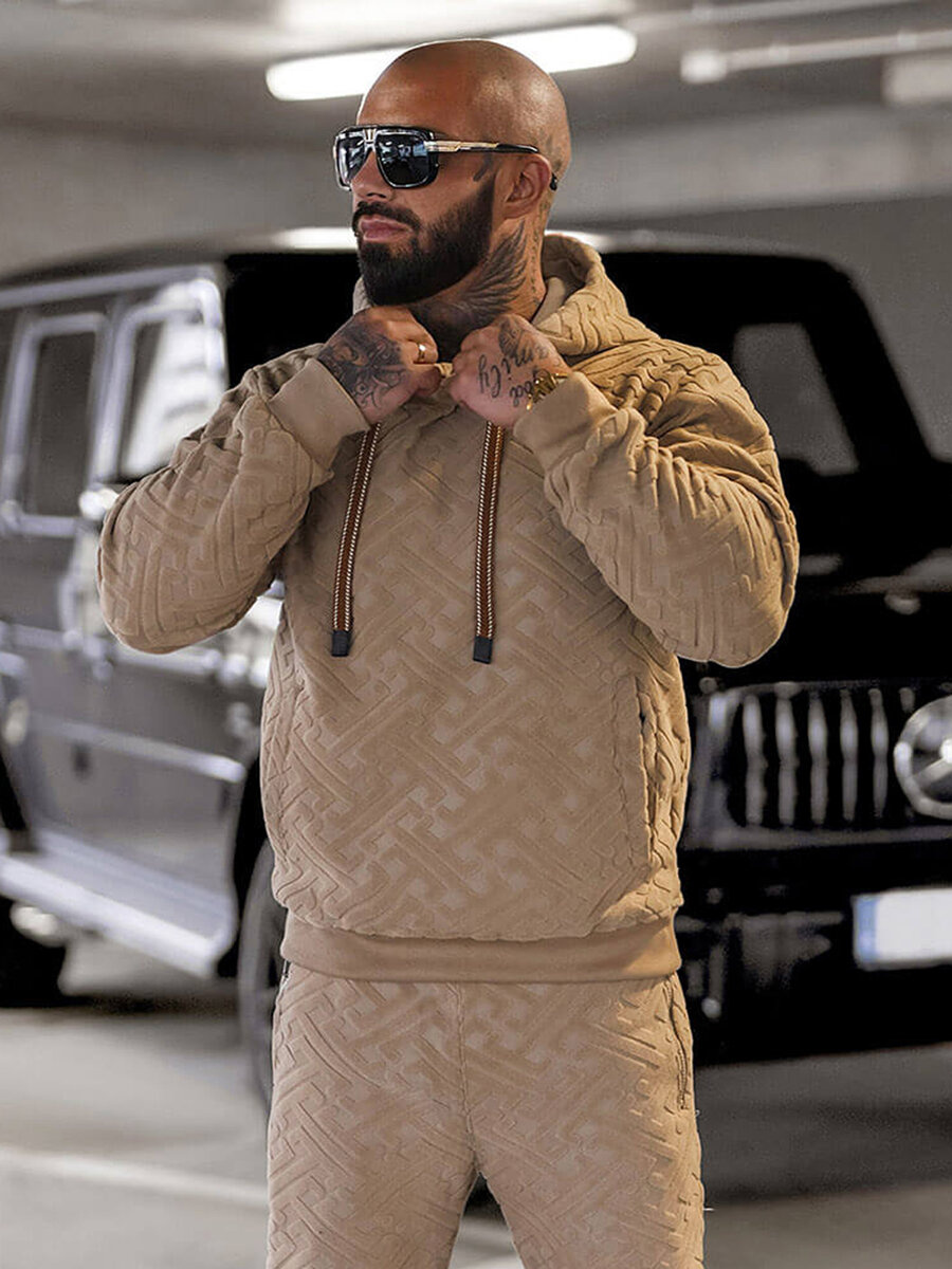- KOMPLET DRESOWY MĘSKI SKŁADAJĄCY SIĘ Z BLUZY Z KAPTUREM ORAZ SPODNI Z KIESZENIAMI PO BOKACH