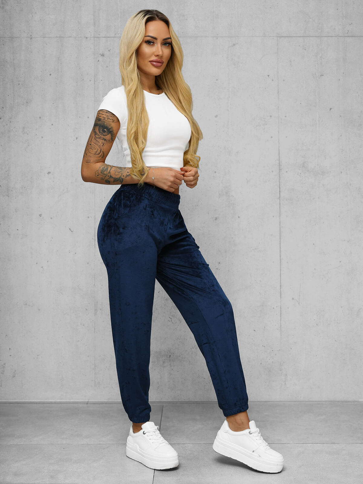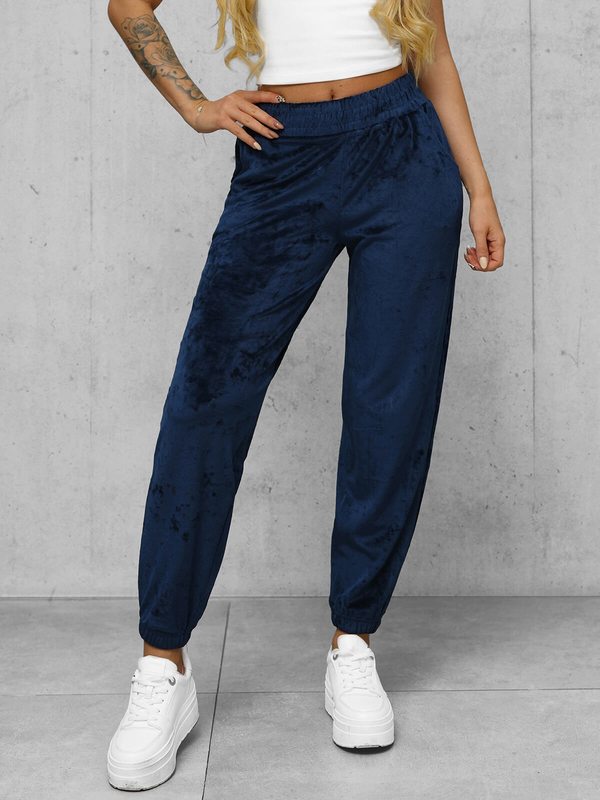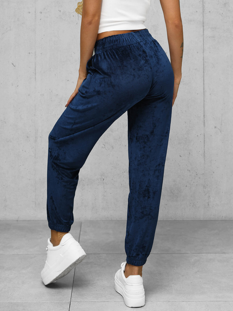 Elegancja i Komfort w Spodniach Dresowych Damskich Welurowych Granatowych OZONEE JS/92K528/66