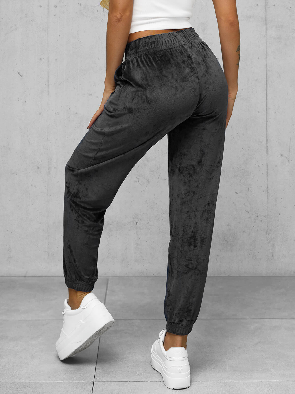 Elegancja i komfort w jednym: Spodnie dresowe damskie welurowe grafitowe OZONEE JS/92K528/5