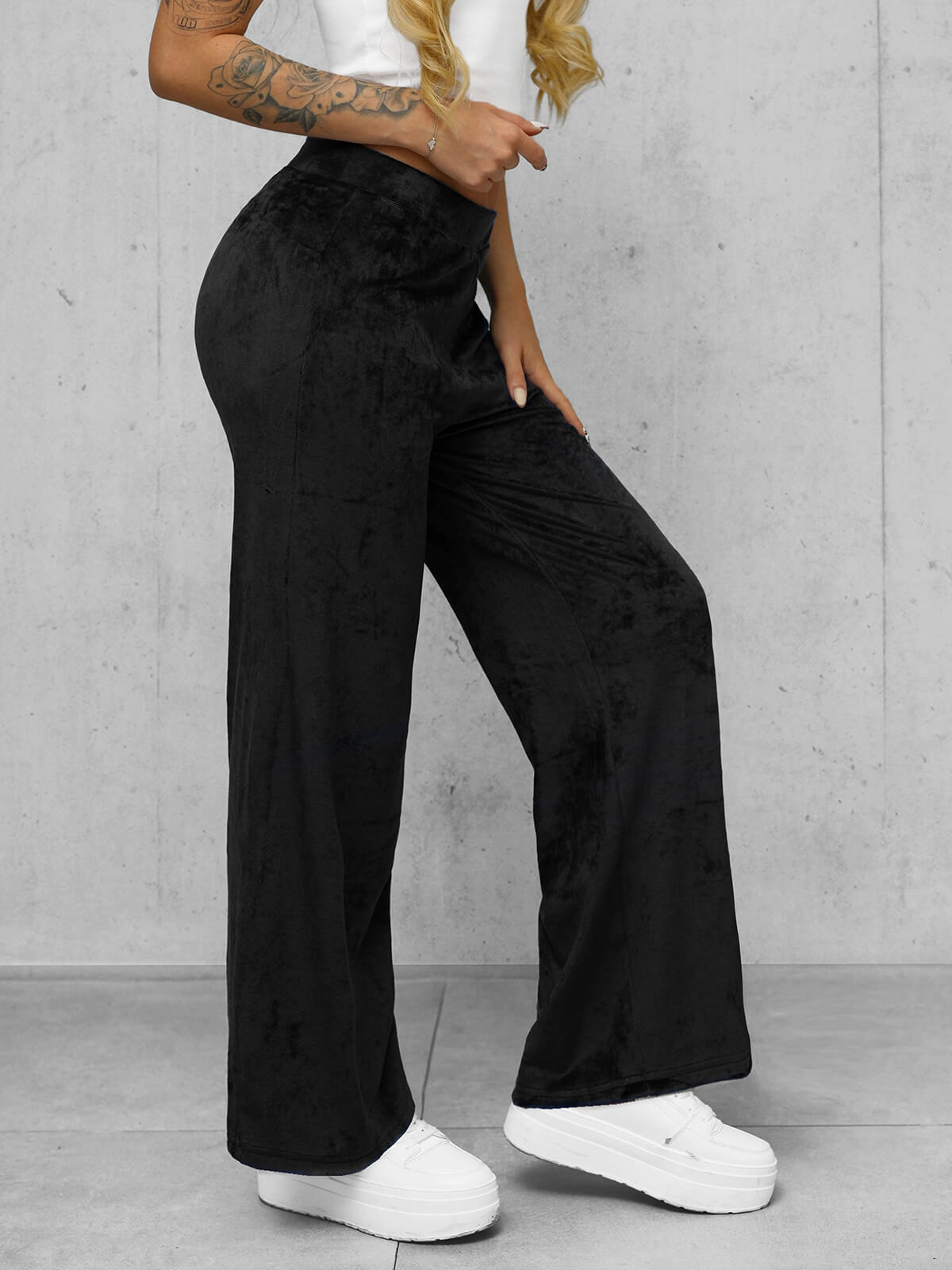 Elegancja i Komfort: Spodnie damskie welurowe z szeroką nogawką czarne OZONEE JS/92K531/3