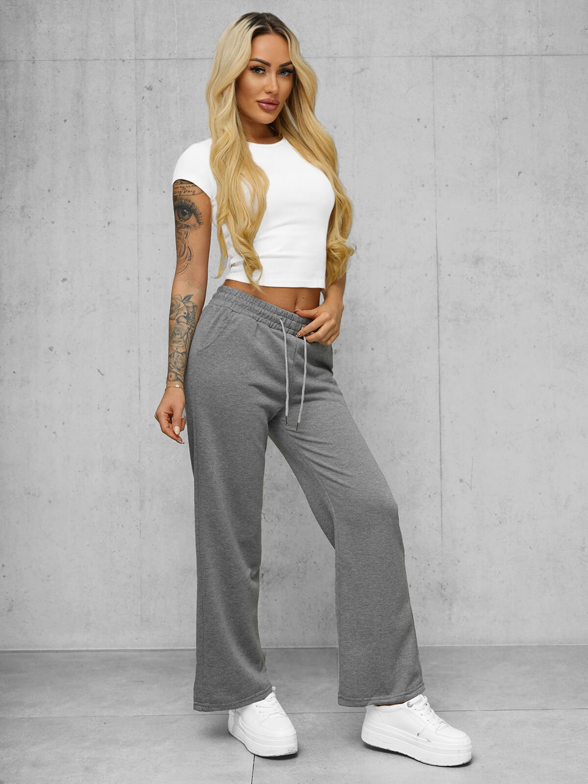 Spodnie dresowe damskie z szeroką nogawką grafitowe OZONEE JS/92K507/5