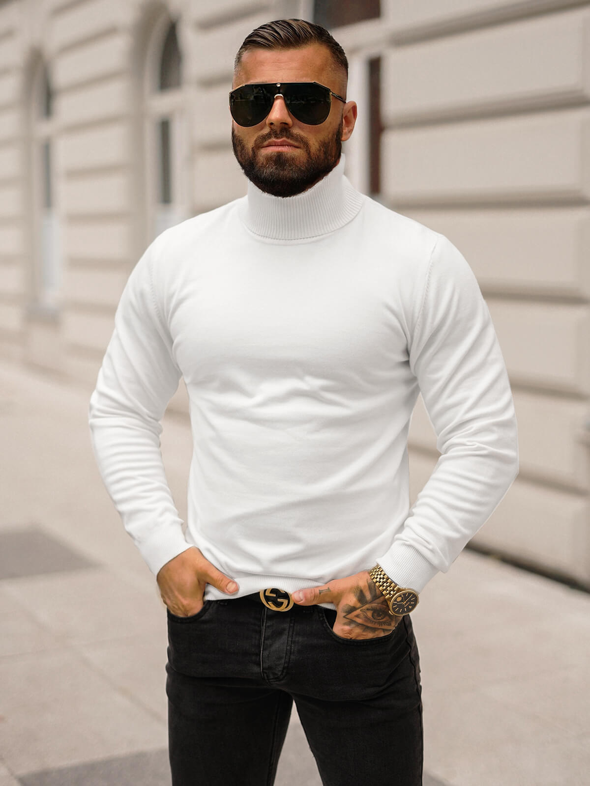 Elegancja i Komfort w Jednym - Sweter męski golf biały OZONEE O/GM309