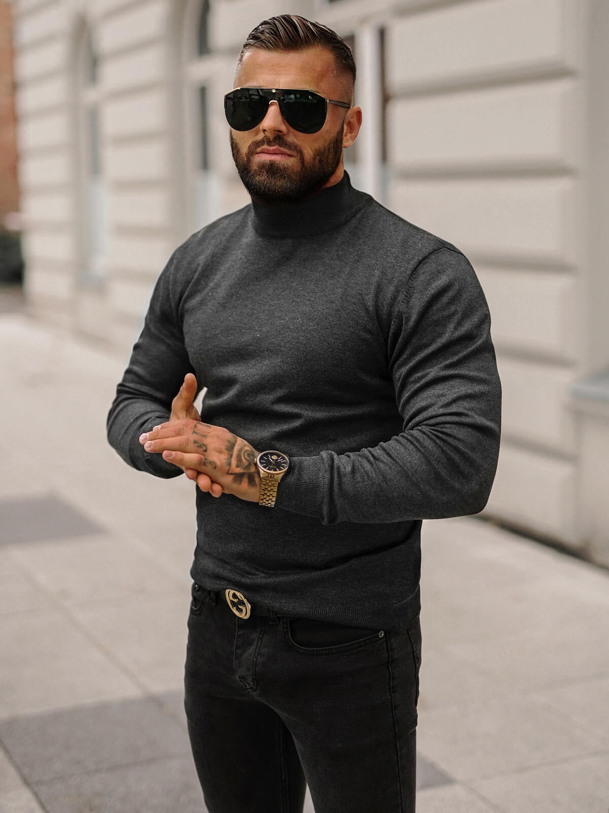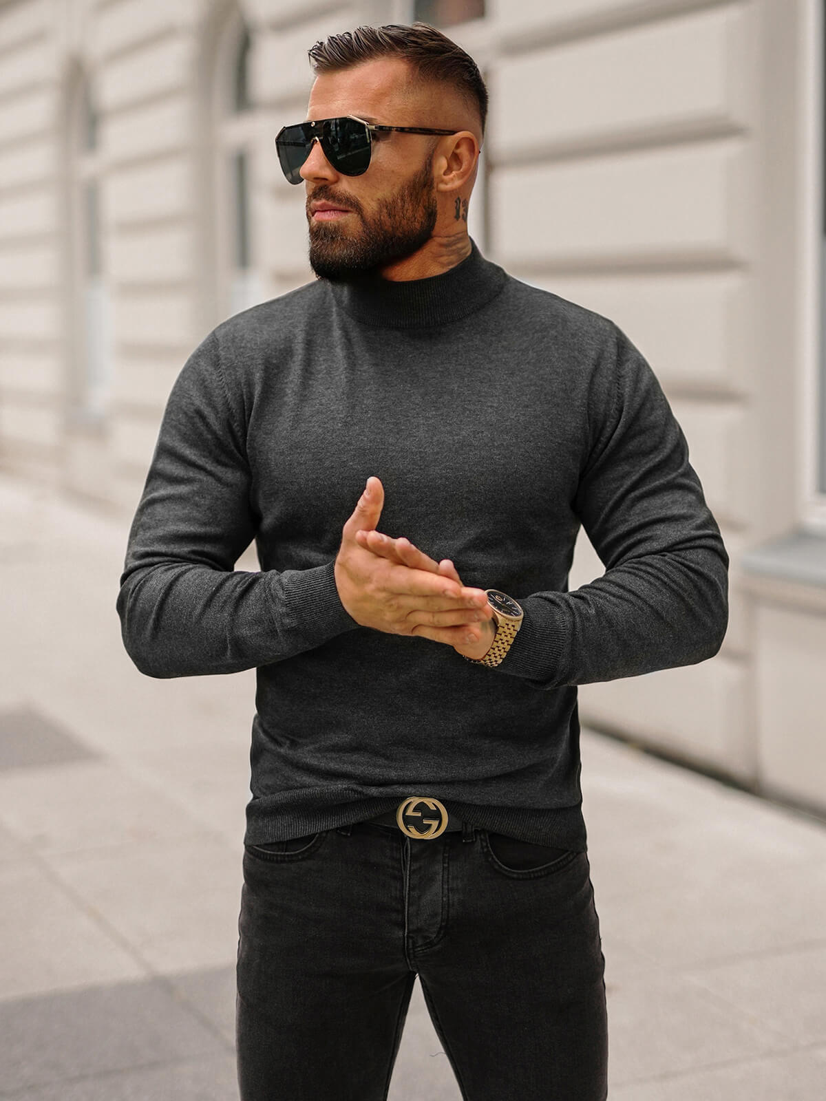 Elegancja i komfort w jednym: Sweter męski półgolf grafitowy OZONEE O/BM203