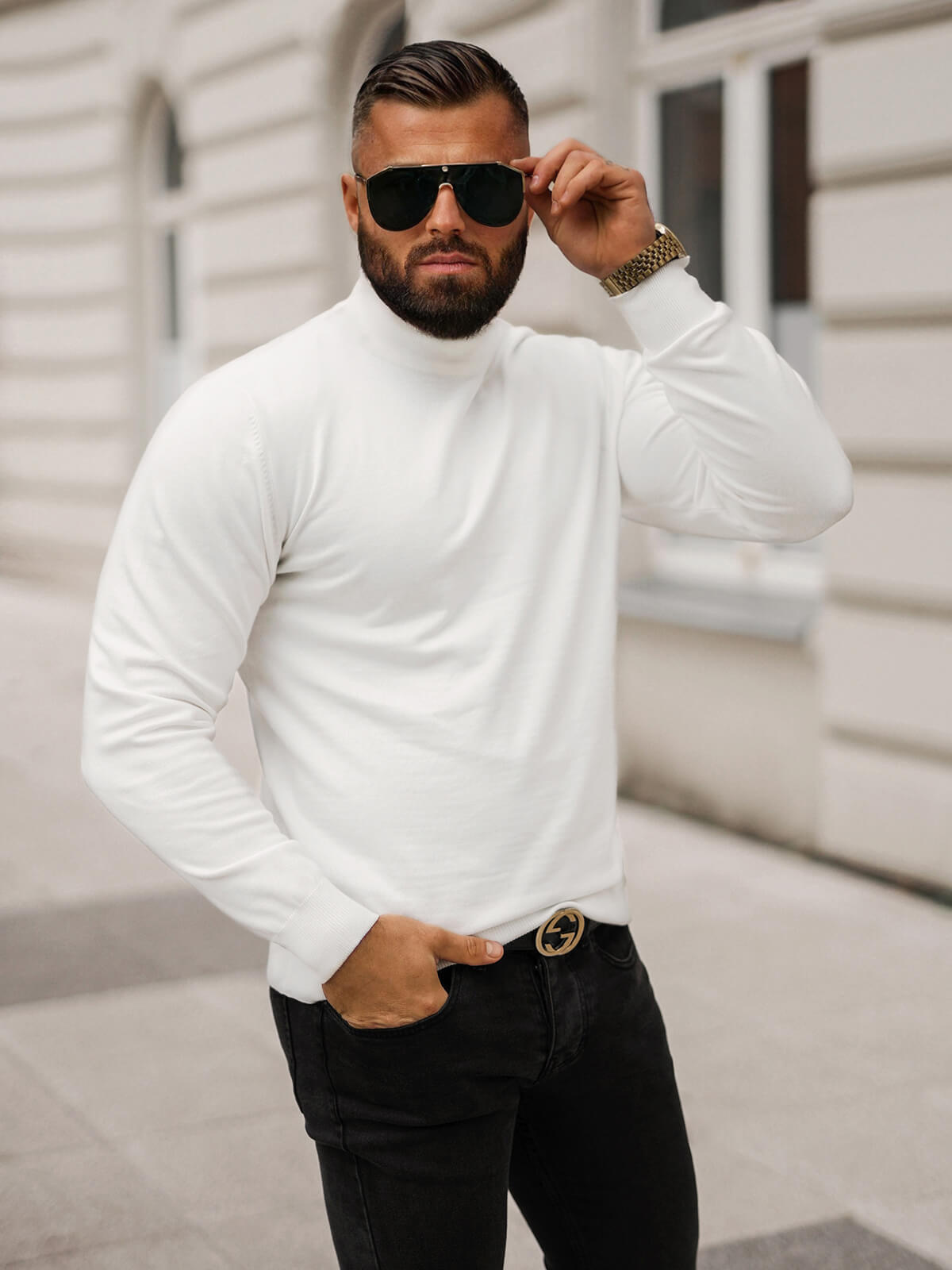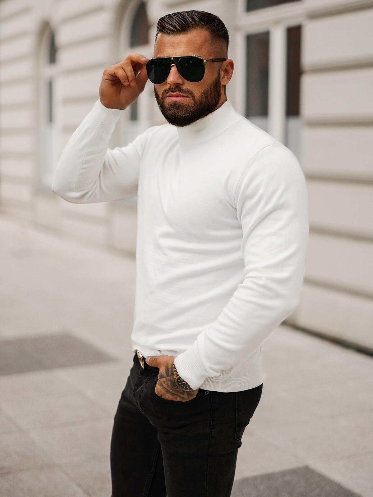 Elegancja i Komfort: Sweter męski półgolf biały OZONEE O/BM209