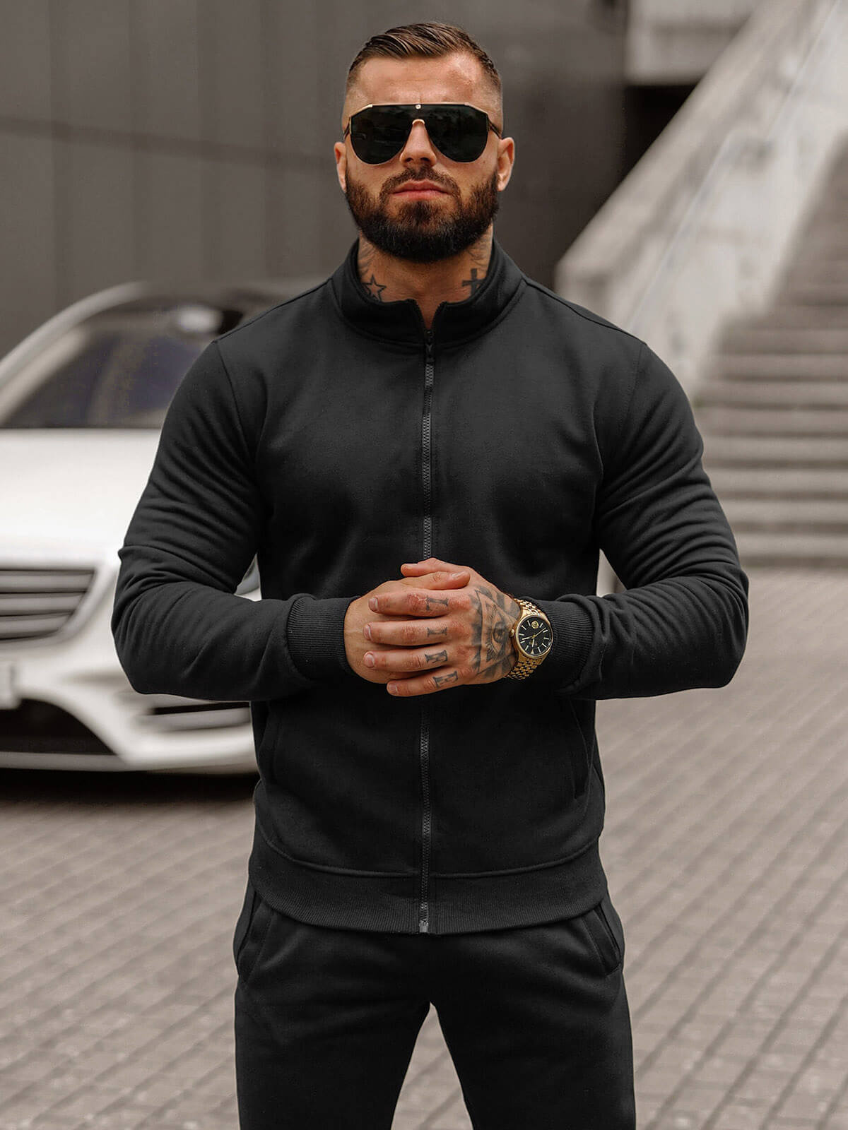 W skład dresowego zestawu męskiego wchodzą 2 elementy. Są nimi rozpinana bluza z kieszeniami po bokach wykończona ściągaczami oraz spodnie z kieszeniami po bokach i ściągaczami. Komplet został wykonany z połączenia bawełny oraz poliestru, dzięki czemu ładnie dopasowuje się do sylwetki, jest wygodny w noszeniu, przyjemny w dotyku i szybko schnie.
