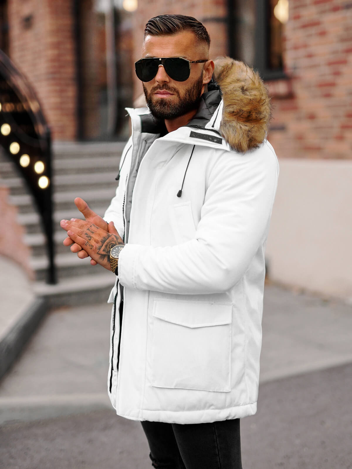 Kurtka zimowa męska z futerkiem biała OZONEE JS/5M779/281 to idealny wybór na zimowe dni. Doskonale sprawdzi się zarówno podczas spacerów, jak i na co dzień. Można ją łączyć z różnymi stylizacjami - od casualowych po bardziej eleganckie. Biała kurtka z futerkiem to must have w męskiej szafie. Doskonale komponuje się z jeansami, swetrami czy eleganckimi spodniami. To propozycja dla mężczyzn, którzy cenią sobie styl i komfort.