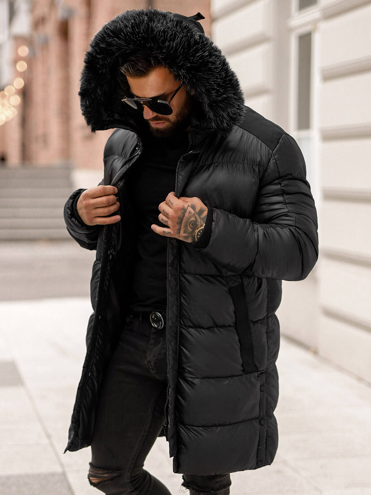 Prezentowana kurtka męska z najnowszej kolekcji OZONEE to połączenie wygody i najnowszych trendów mody. Wykonana z wysokiej jakości nylonu, zapewnia doskonałą ochronę przed zimnem, a jednocześnie gwarantuje swobodę ruchów. Kaptur z odpinanym futerkiem dodaje jej nie tylko stylu, ale także funkcjonalności, umożliwiając dostosowanie do różnych warunków pogodowych. Modne pikowania oraz praktyczne kieszenie po bokach i w środku dopełniają całość, tworząc niezwykle praktyczny i modny element garderoby.