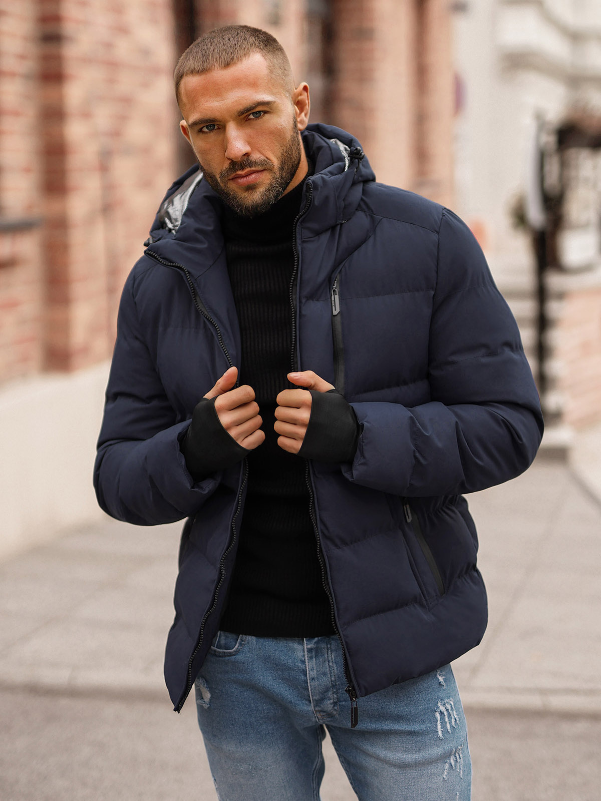 Styl i komfort w jednym - Kurtka zimowa męska pikowana granatowa OZONEE JS/5M756/215
