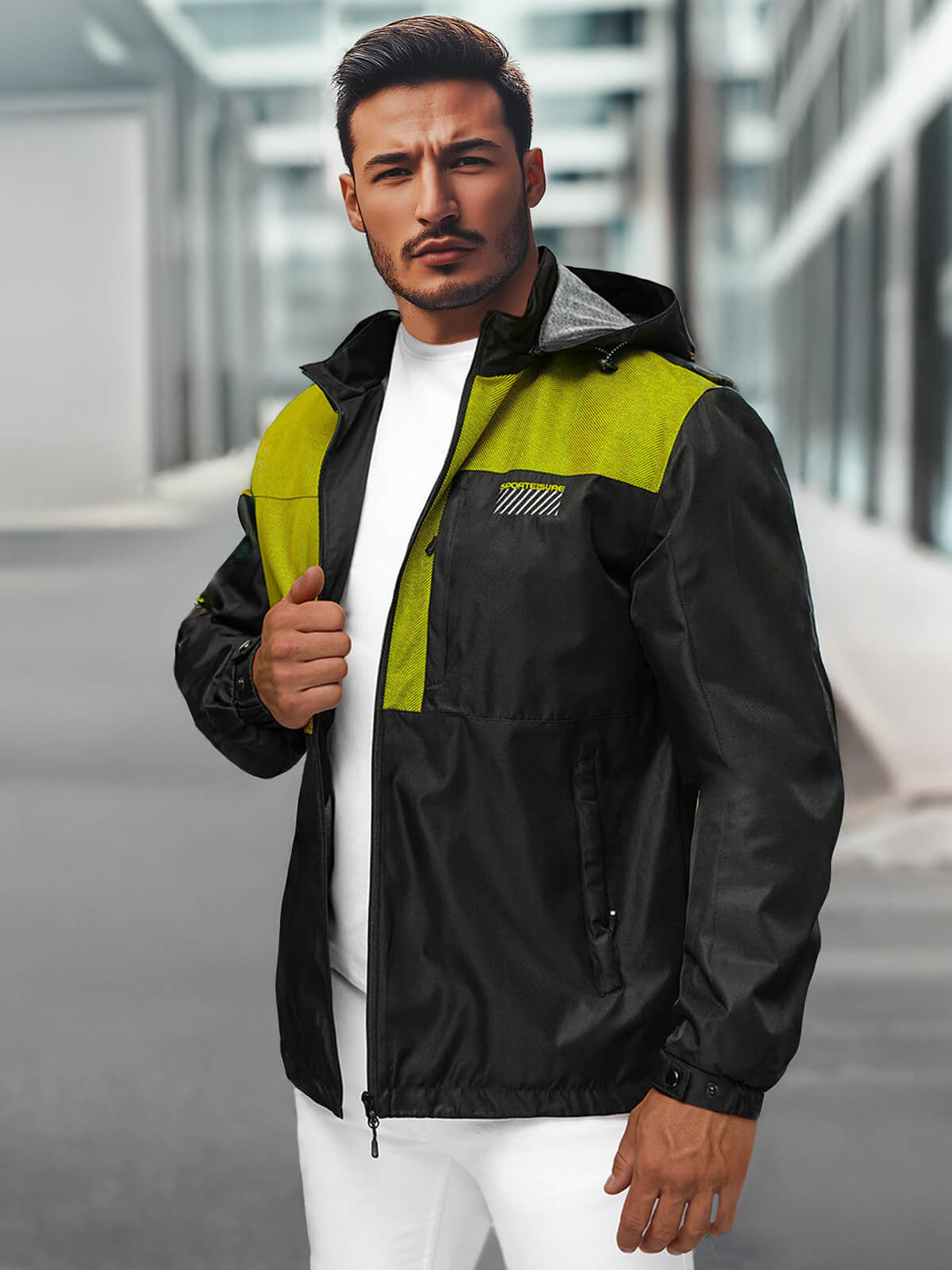 Odkryj nowoczesny styl z kurtką męską, która łączy w sobie elegancję i funkcjonalność. Zaprojektowana z myślą o mężczyznach ceniących sobie komfort, kurtka ta jest idealnym wyborem na przejściowe sezony. Odpinany kaptur i kontrastowe łączenia materiału dodają jej niepowtarzalnego charakteru, który wyróżni Cię z tłumu. Praktyczne kieszenie z przodu i po bokach zapinane na zamek zapewniają wygodę i bezpieczeństwo przechowywania drobiazgów.