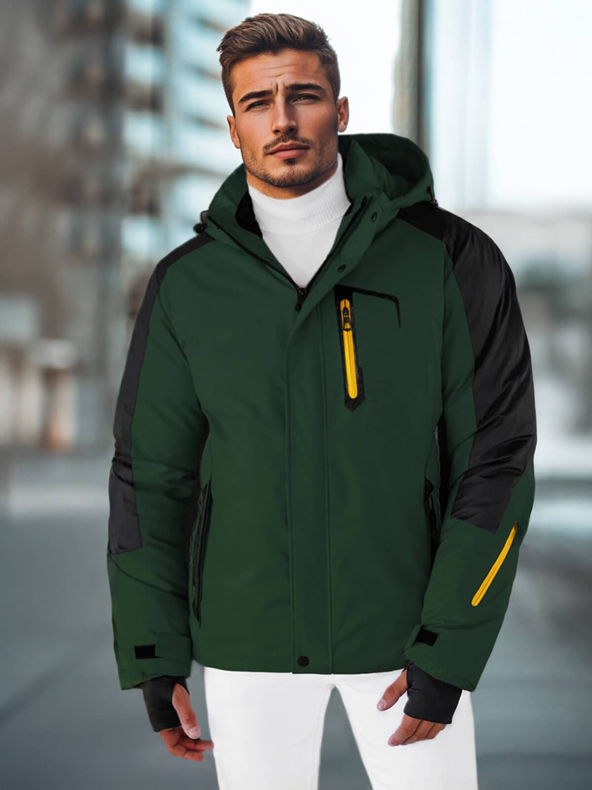 Odkryj niepowtarzalny styl zimowej kurtki męskiej OZONEE, która łączy w sobie nowoczesny design z praktycznymi rozwiązaniami. Ten ciemno-zielony model przyciąga wzrok swoją elegancją, jednocześnie zapewniając maksymalny komfort noszenia podczas chłodnych dni. Odpinany kaptur i wysoki kołnierz typu komin gwarantują doskonałą ochronę przed wiatrem i zimnem. Rękawy ze ściągaczem oraz liczne kieszenie, w tym na rękawie, to dodatkowe atuty, które czynią tę kurtkę niezwykle funkcjonalną.