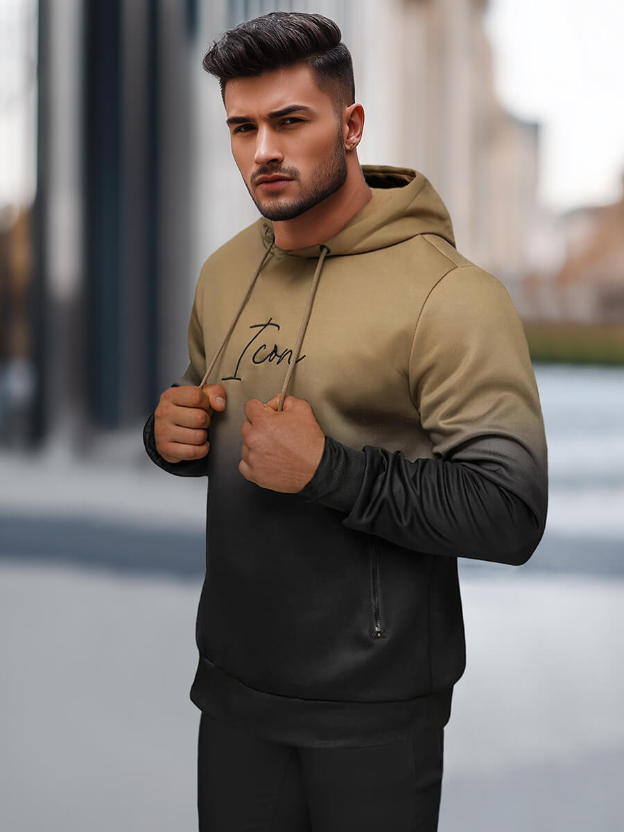 Stylowa bluza z kapturem męska beżowo-czarna OZONEE JS/27B6501/91Z