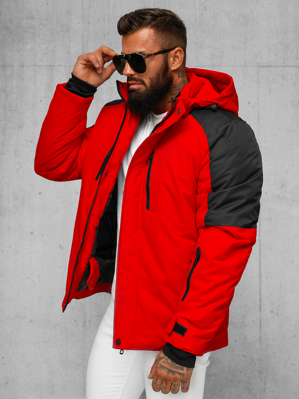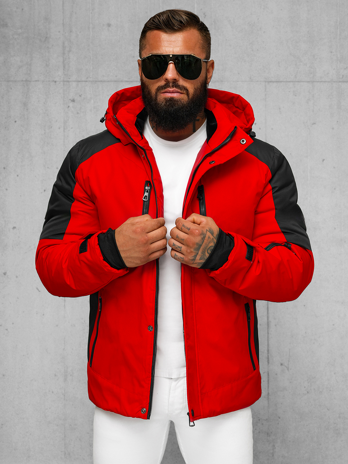 Stylowa ochrona przed zimnem - Kurtka zimowa męska czerwona OZONEE JS/91M9902/270Z