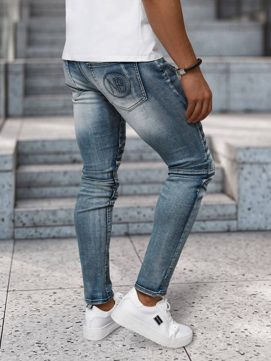 Spodnie pochodzą z naszej najnowszej kolekcji. Mają fason typu slim fit, którego cechą charakterystyczną są wąskie nogawki. Z przodu oraz z tyłu jeansów znajdują się kieszenie, do których możesz schować niezbędne drobiazgi typu portfel, klucze lub telefon. Przeszycia pokrywające spodnie sprawiają, że prezentują się one bardzo oryginalnie, przykuwając wzrok. Jeansy zostały wyprodukowane z połączenia bawełny, poliestru oraz elastanu, dzięki czemu są miłe w dotyku, wygodne w noszeniu, ładnie układają się na ciele, nie rozciągają się i nie gniotą.