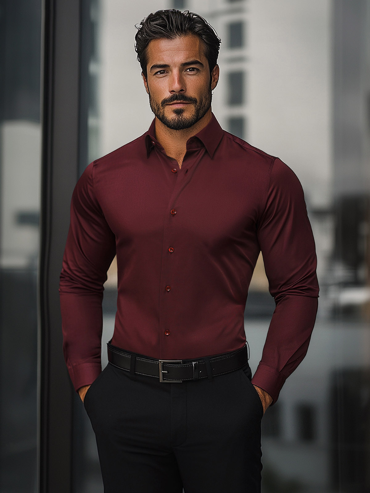 Elegancja i Nowoczesność w Jednym – Koszula męska bordowa OZONEE O/V138