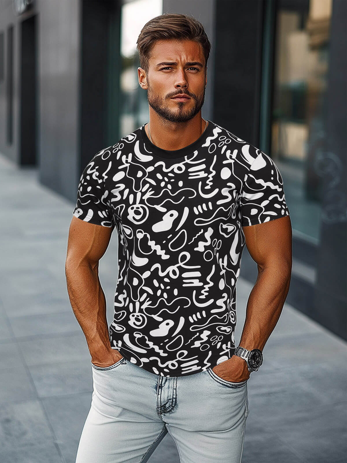 Nowoczesny i stylowy T-shirt męski czarny OZONEE JS/8T1205/3