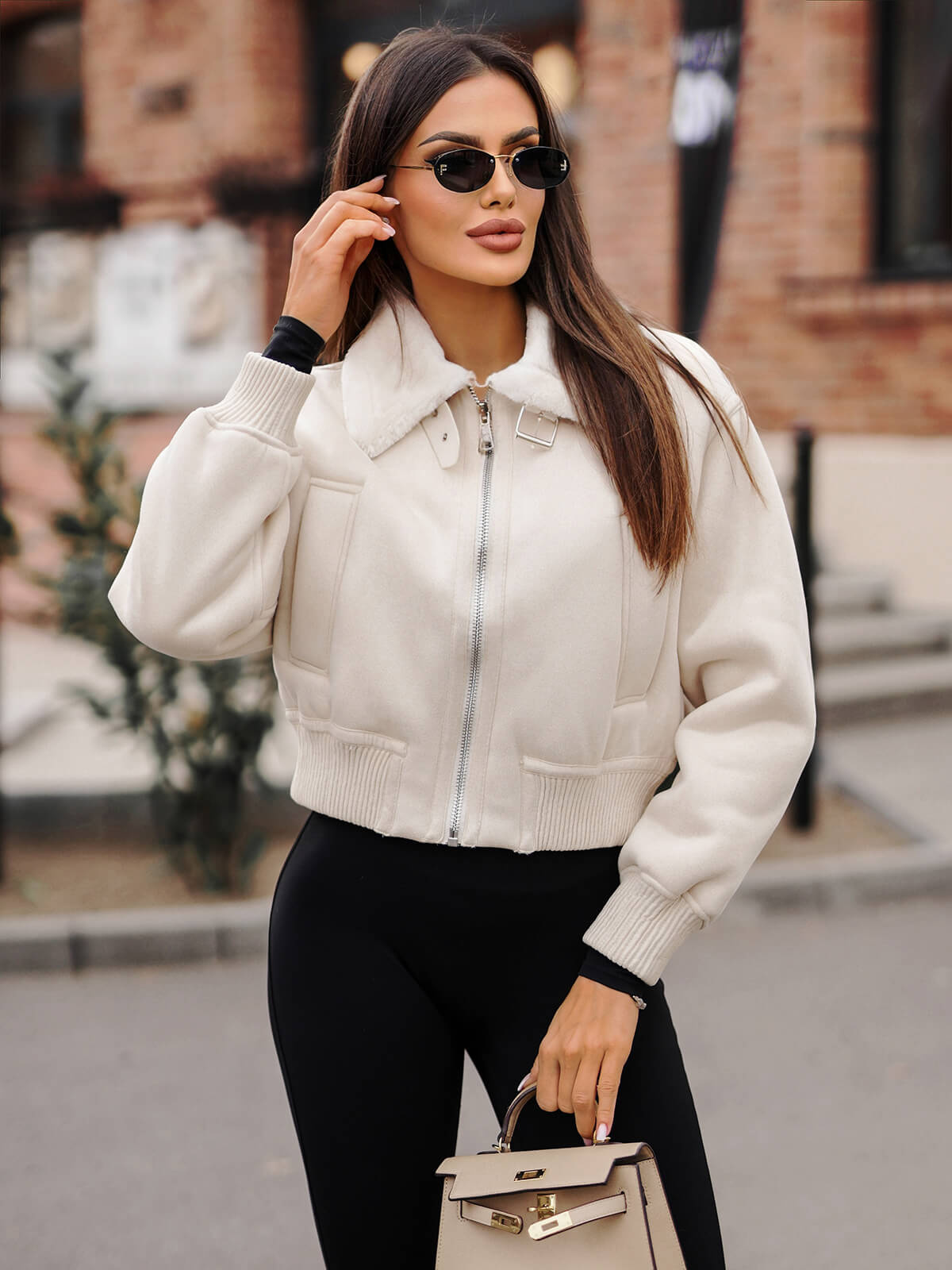 Elegancja i komfort w jednym: Kurtka damska z futerkiem ecru OZONEE O/81326