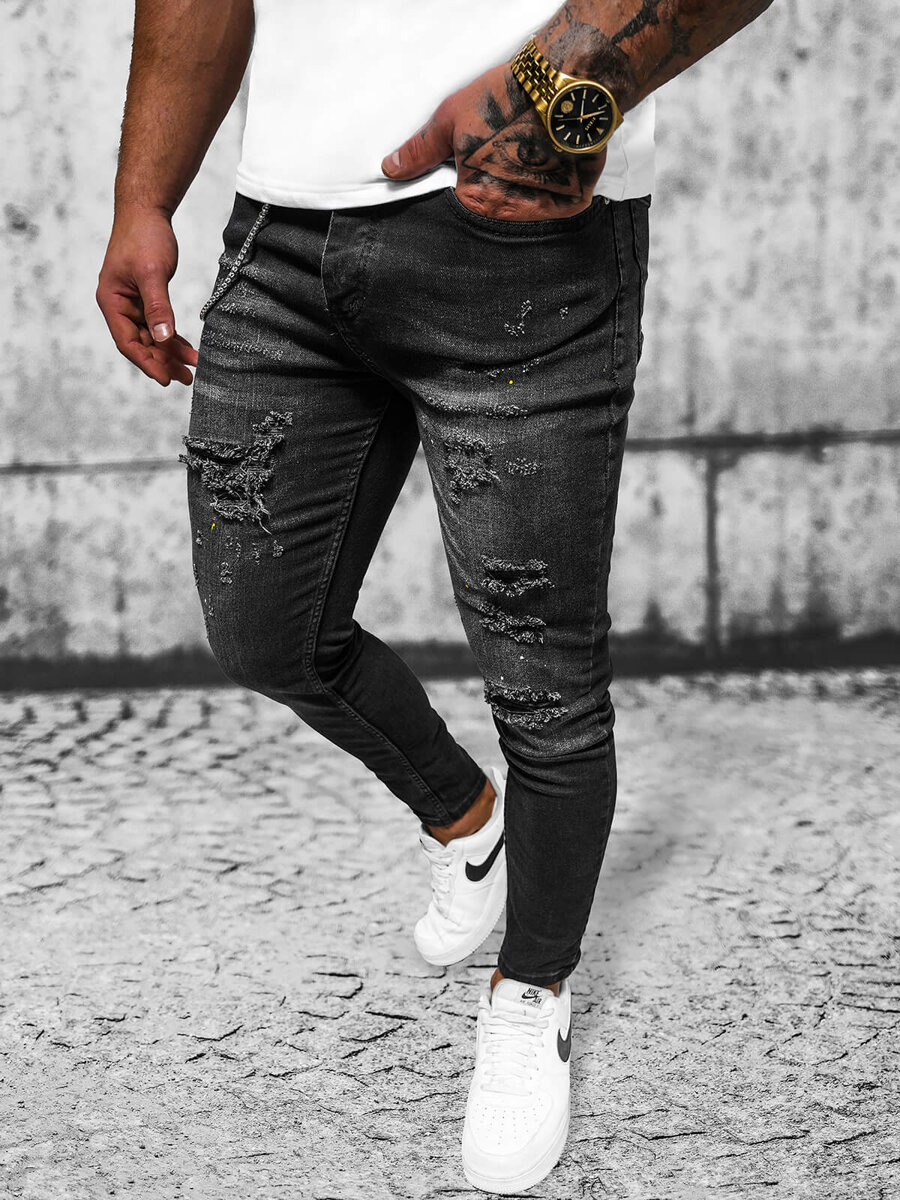 Styl i komfort w jednym - Spodnie jeansowe męskie czarne OZONEE O/MB465