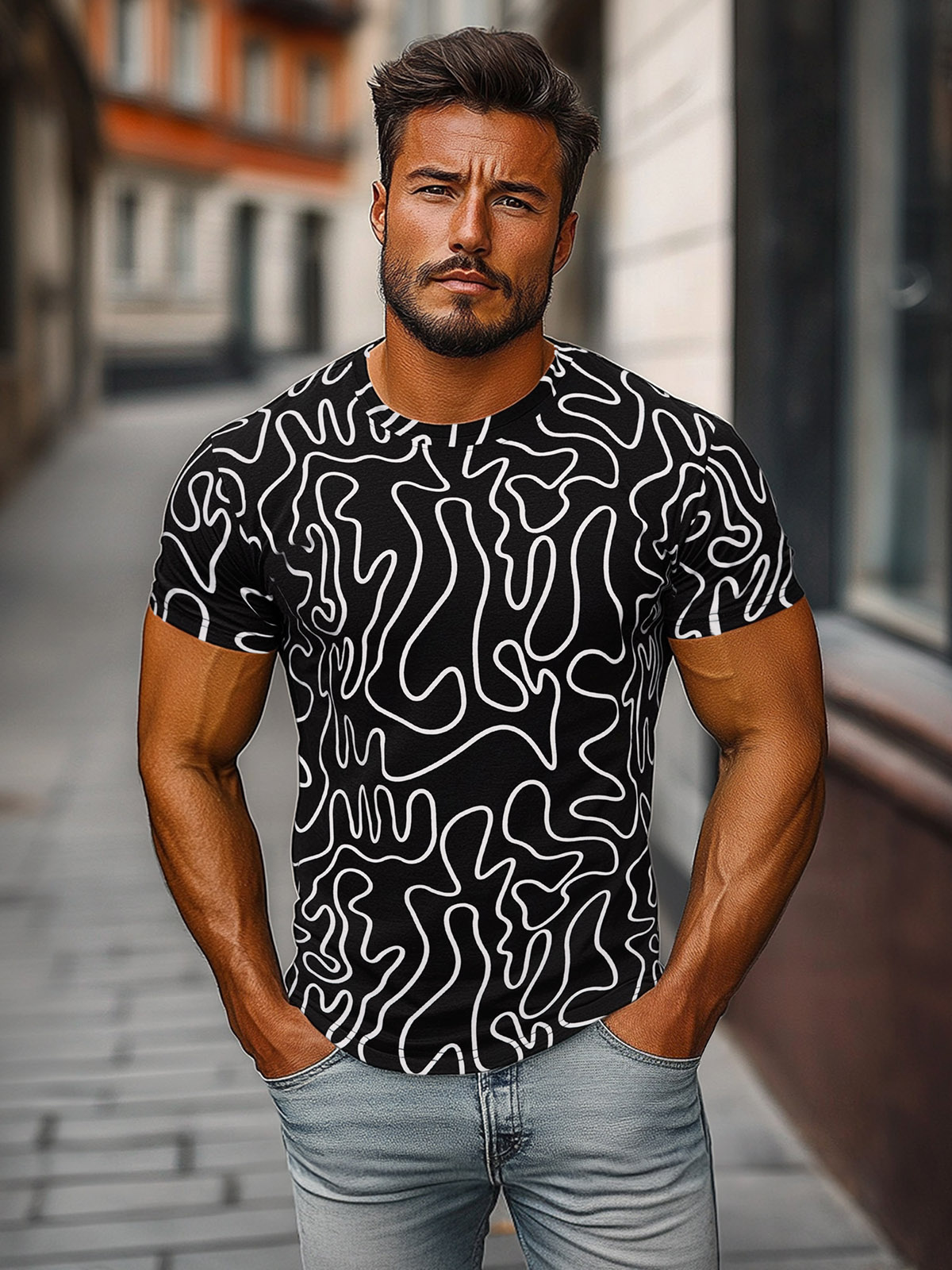 Wyjątkowo stylowy T-shirt męski czarny OZONEE JS/8T1198/3