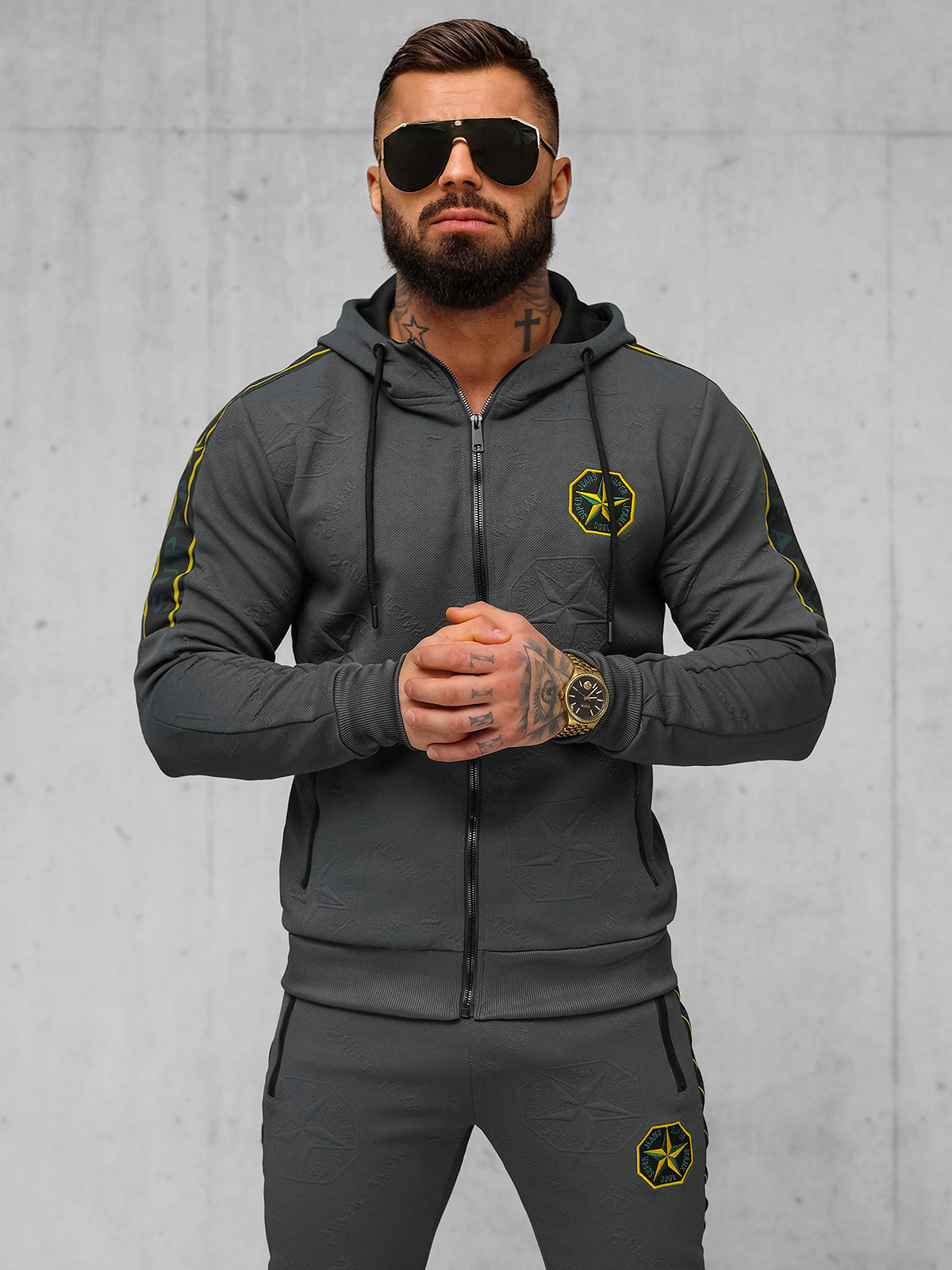 - KOMPLET DRESOWY MĘSKI SKŁADAJĄCY SIĘ Z ROZPINANEJ BLUZY Z KAPTUREM ORAZ SPODNI Z KIESZENIAMI PO BOKACH
