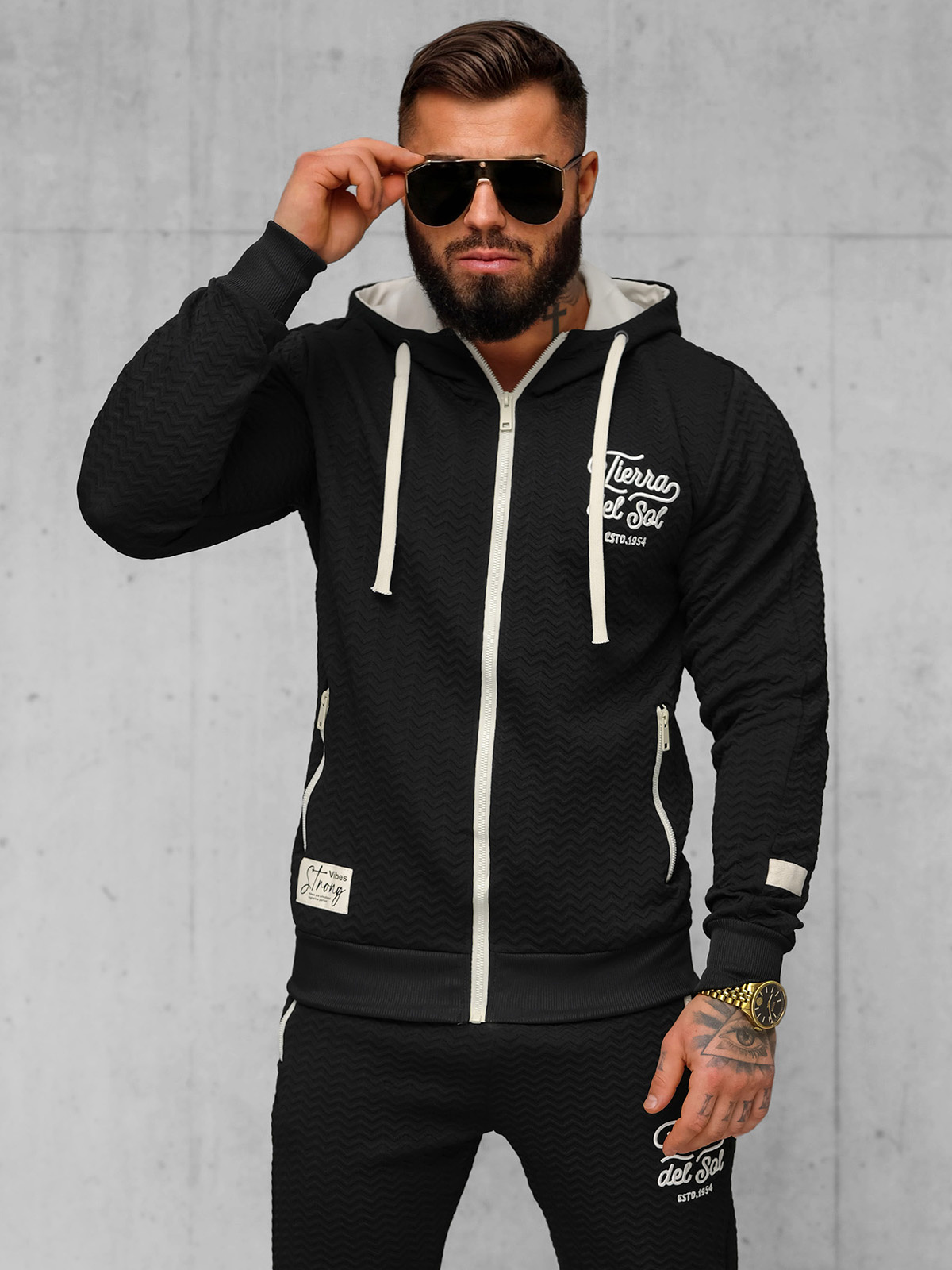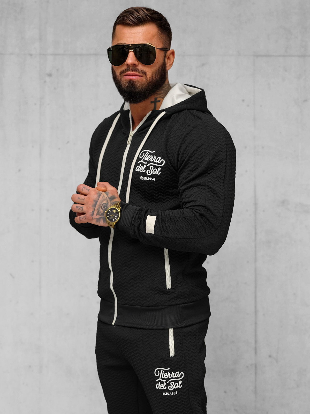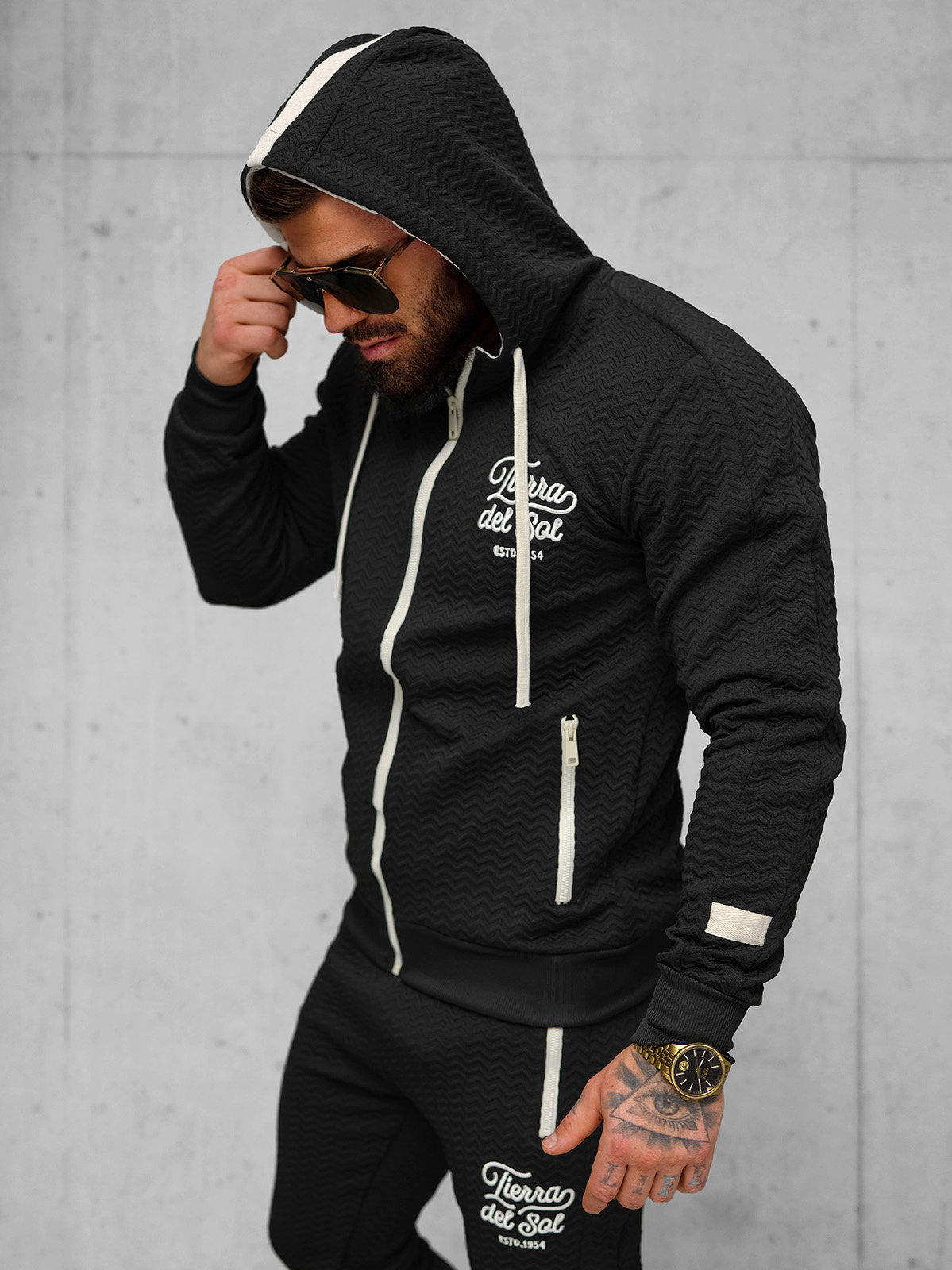 - KOMPLET DRESOWY MĘSKI SKŁADAJĄCY SIĘ Z ROZPINANEJ BLUZY Z KAPTUREM ORAZ SPODNI Z KIESZENIAMI PO BOKACH