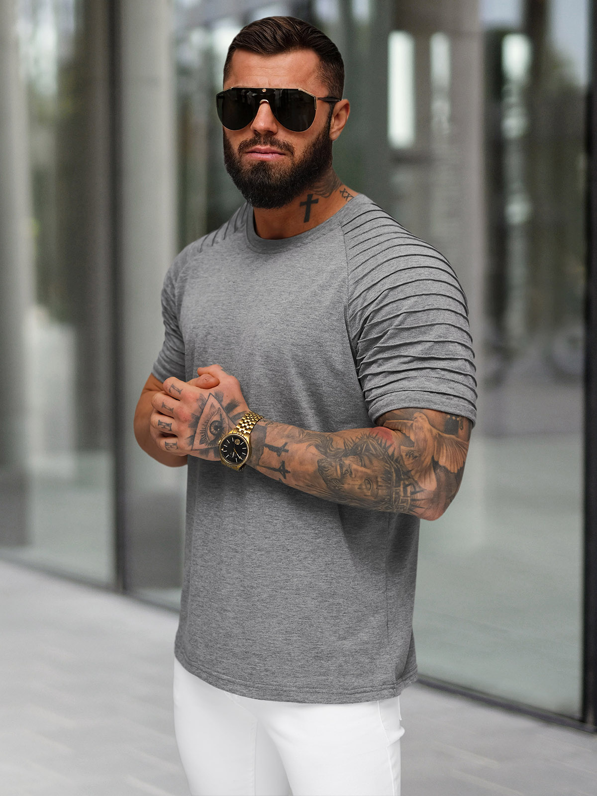 Z pomocą tego t-shirtu stworzysz dziesiątki modnych stylizacji na różne okazje. Możesz go założyć na spotkanie ze znajomymi, spacer, do szkoły, na uczelnię czy koncert. Koszulka będzie się bardzo dobrze komponowała z innymi męskimi ubraniami dostępnymi w asortymencie naszego sklepu internetowego. Można ją zestawić na przykład z kurtką typu ramoneska oraz jeansami z przetarciami i dziurami lub bomberką oraz joggerami.