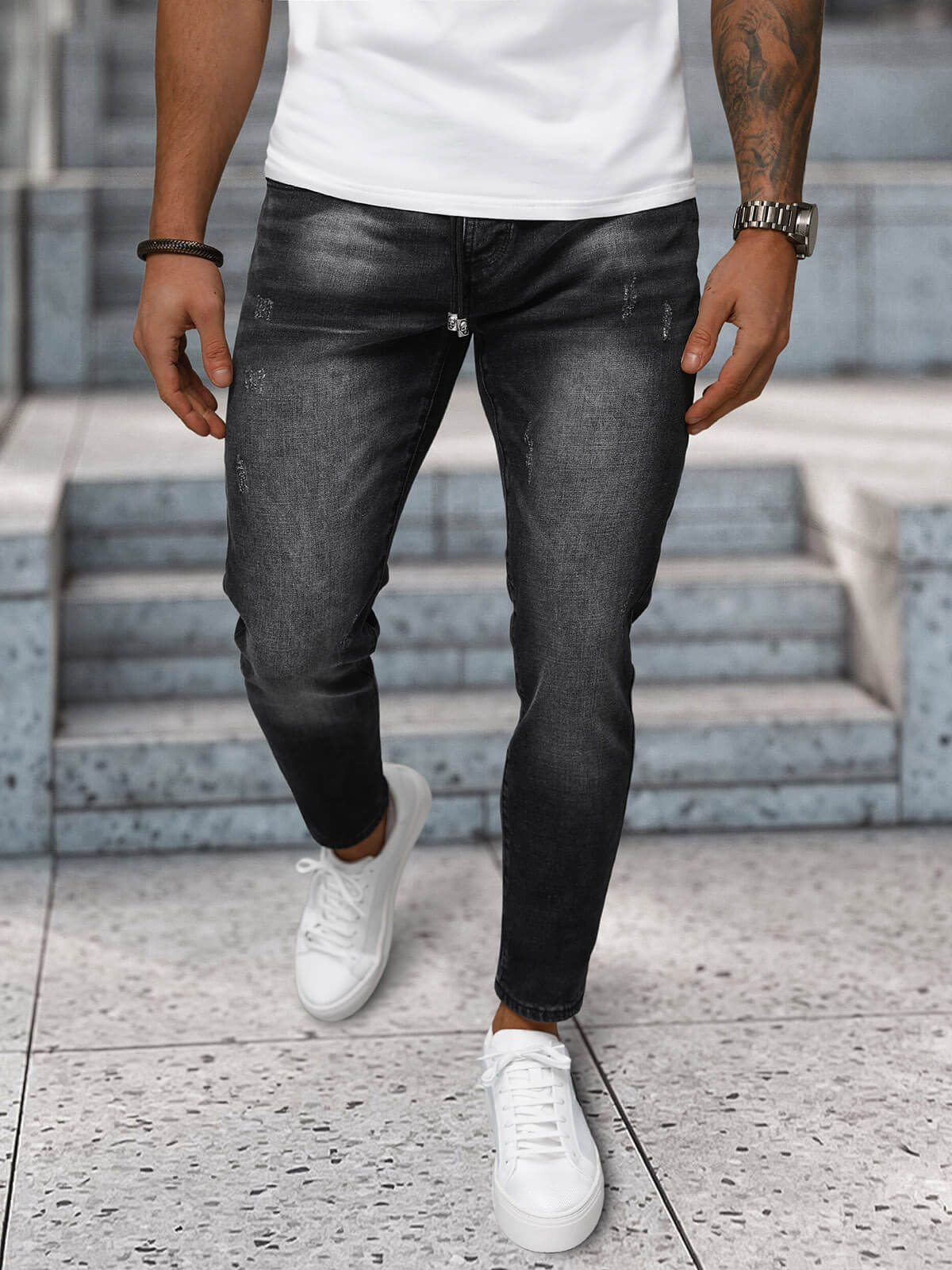 Stylowe i nowoczesne spodnie jeansowe męskie czarne OZONEE NB/MP0063/1N