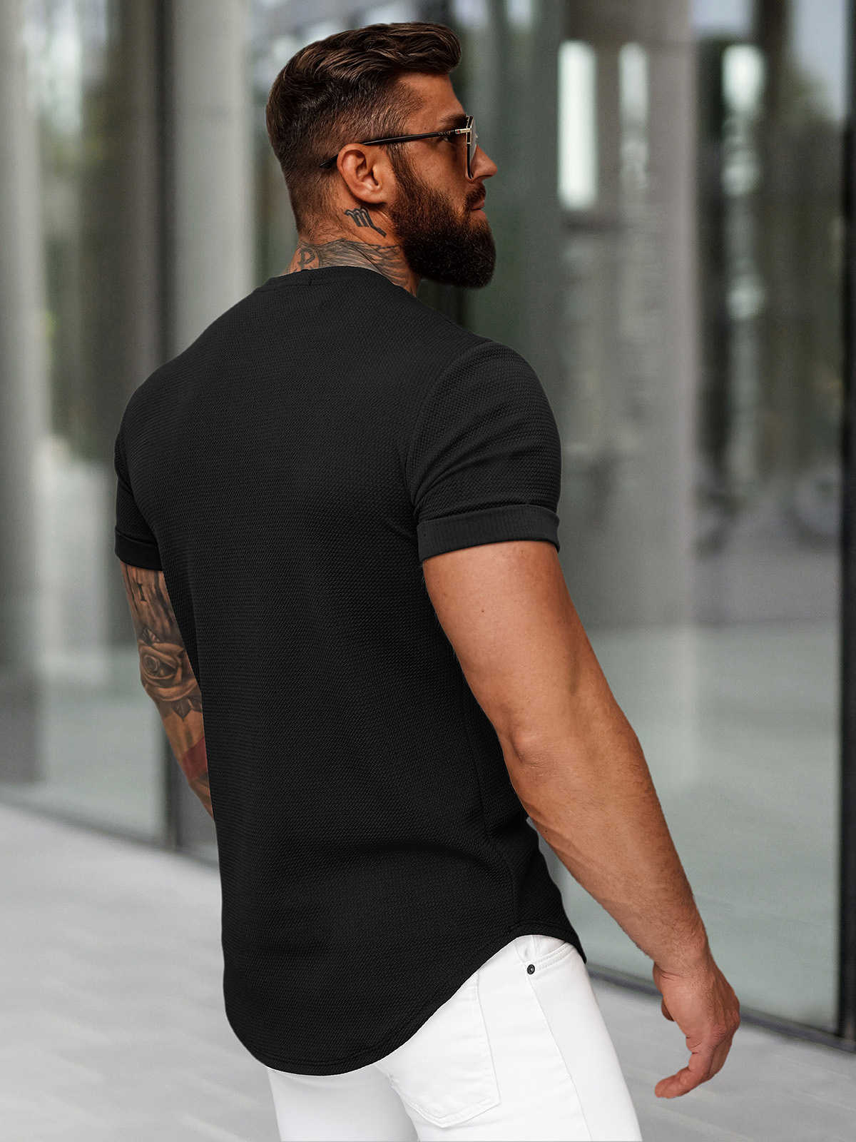 T-shirt męski slim-fit czarny OZONEE O/B1215