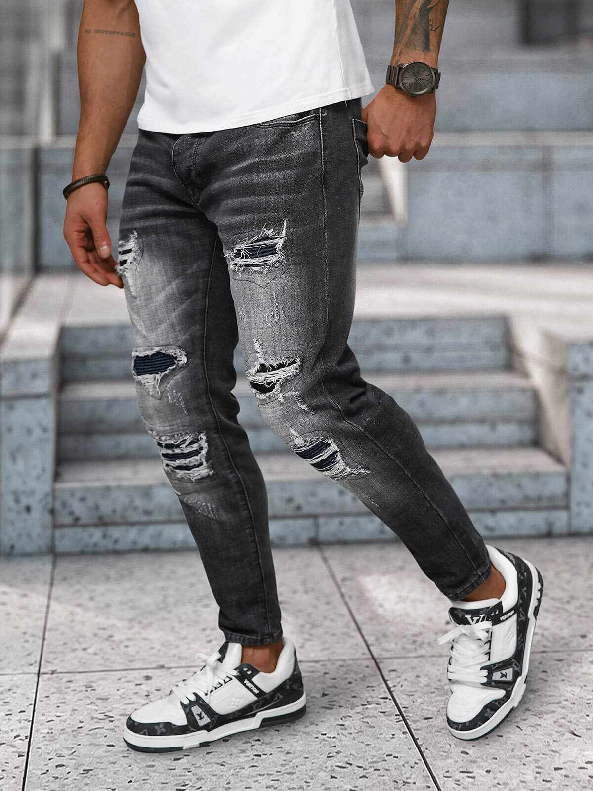 Styl i wygoda w czerni – Spodnie jeansowe męskie czarne OZONEE NB/MP0075N