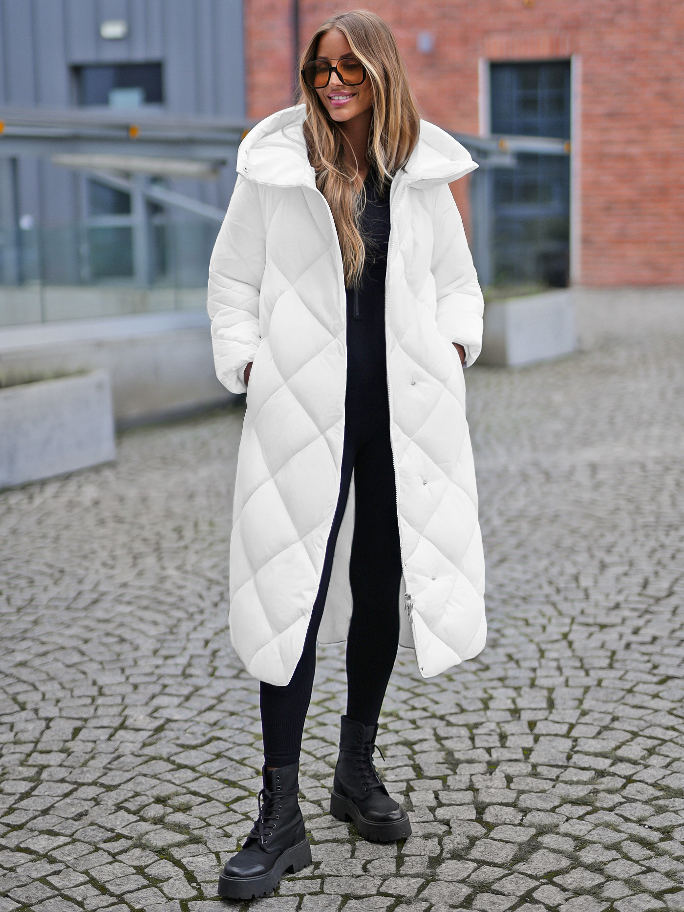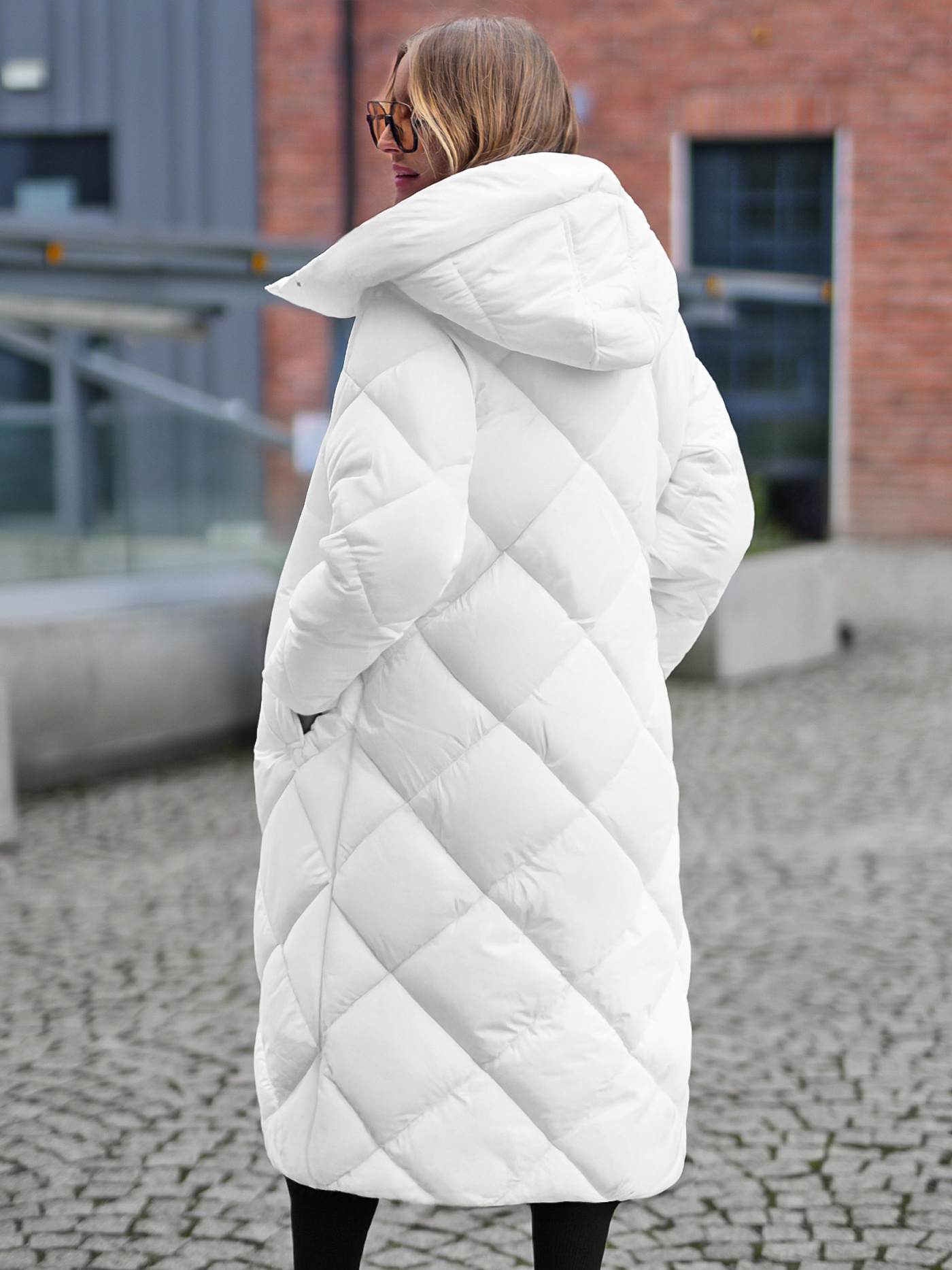 Kurtka zimowa damska długa pikowana biała OZONEE JS/5M3173/392