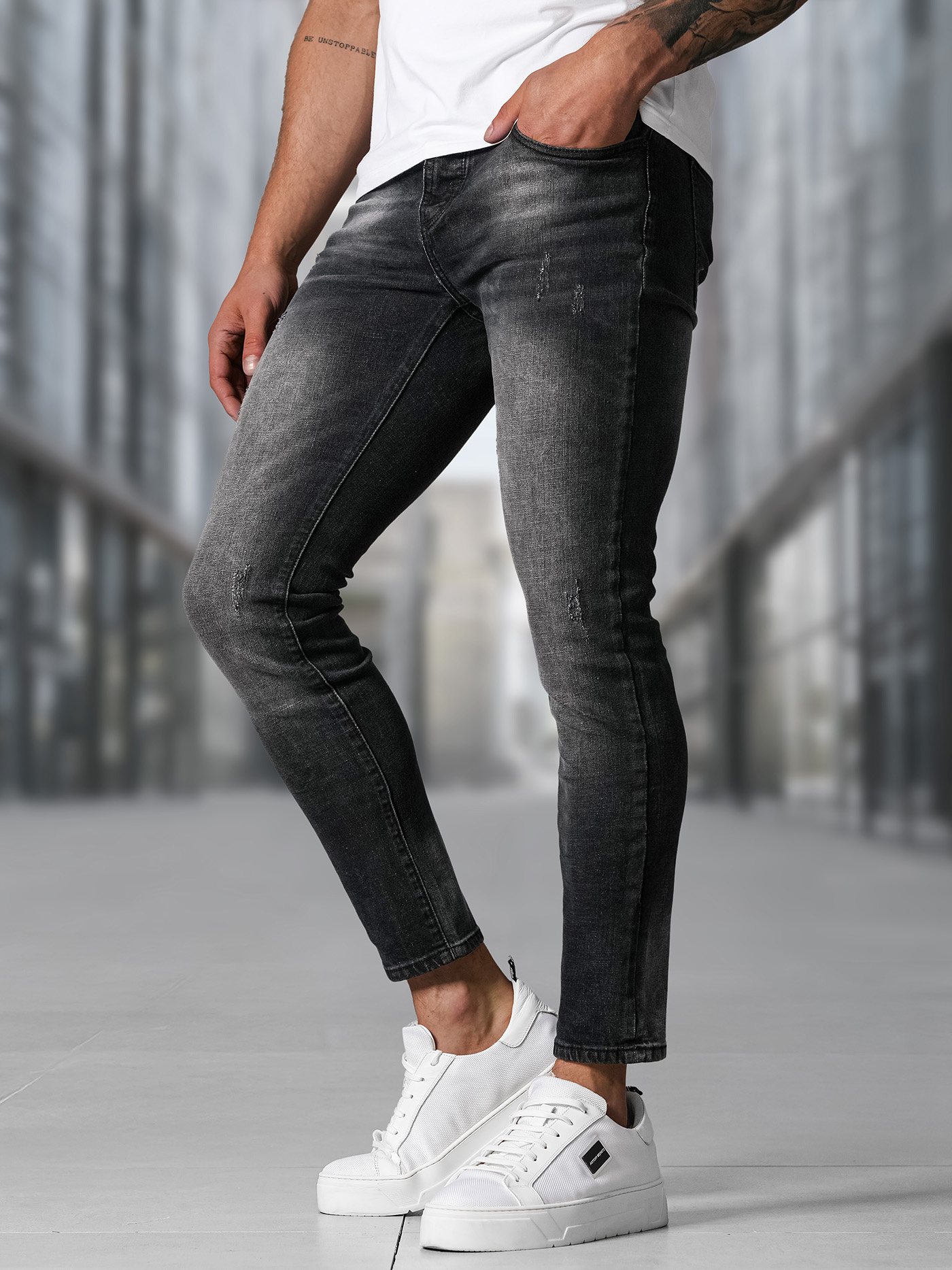 Stylowe i nowoczesne spodnie jeansowe męskie czarne OZONEE NB/MP0063/1N