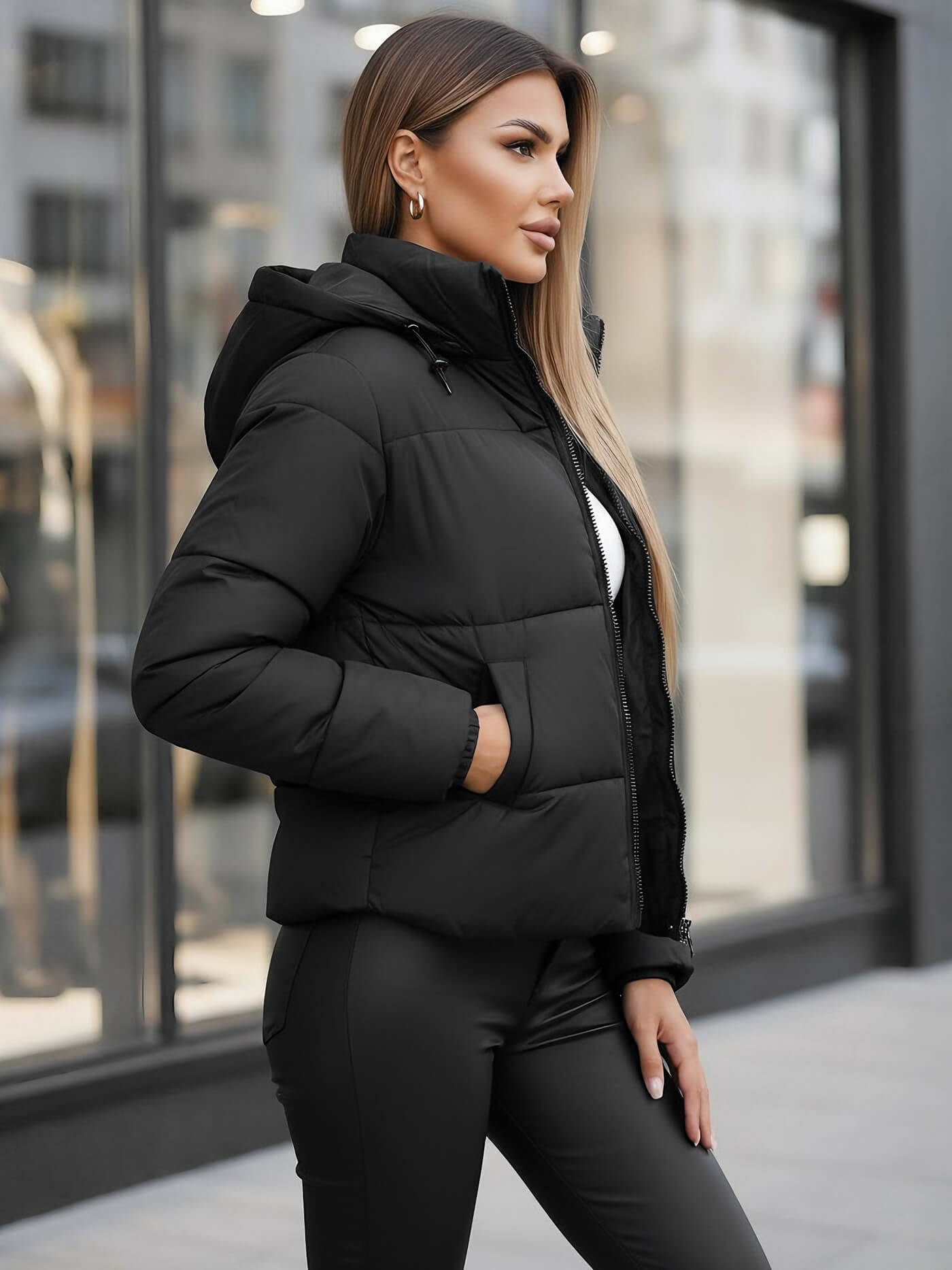 Elegancja i funkcjonalność w jednym - Kurtka zimowa damska pikowana czarna OZONEE JS/16M9188/392