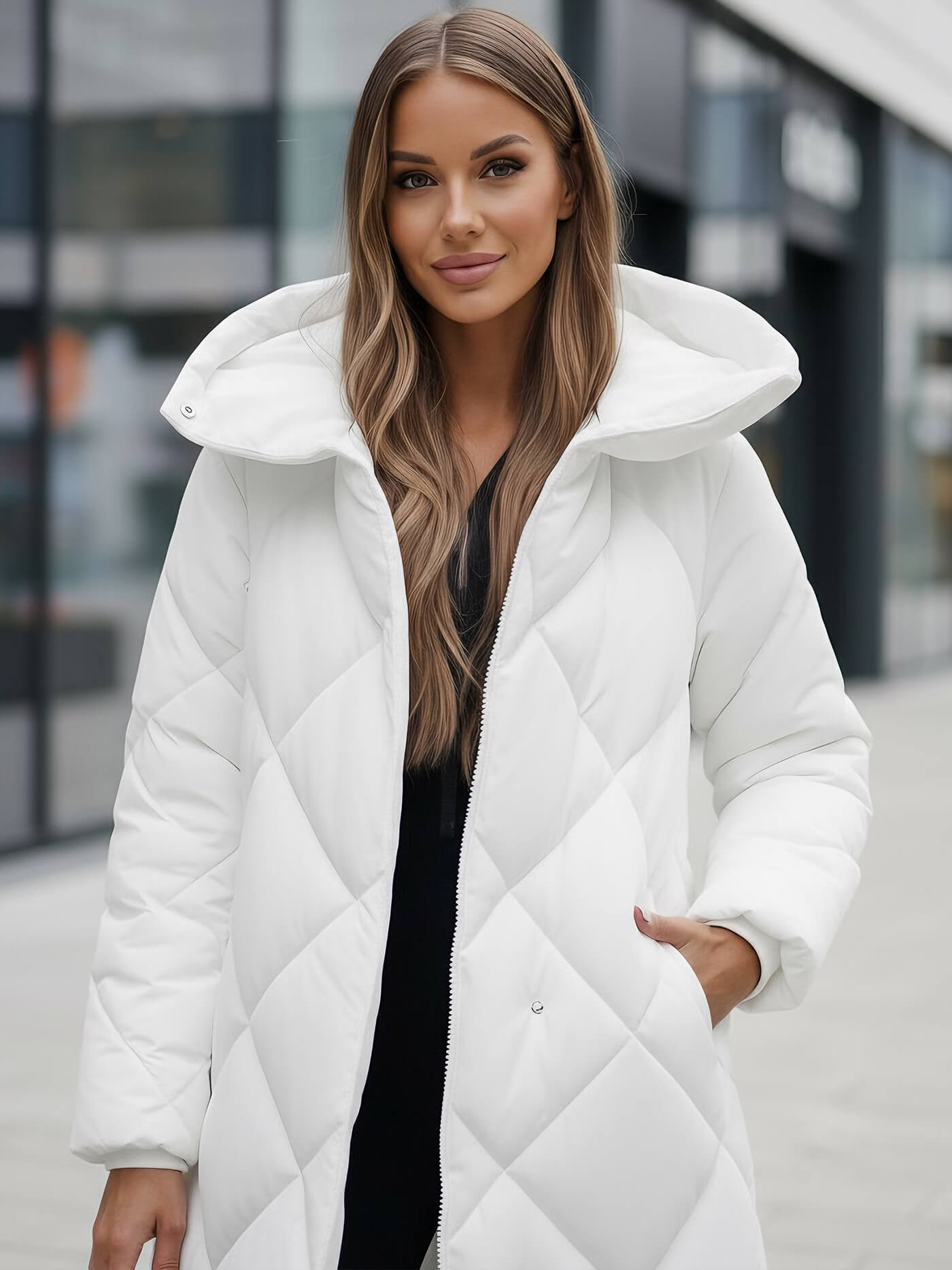 Kurtka zimowa damska długa pikowana biała OZONEE JS/5M3173/392