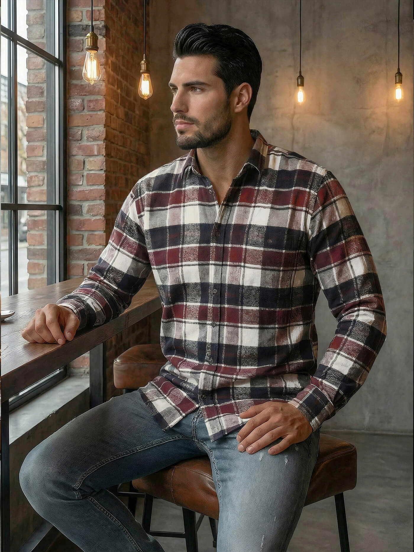 Koszula męska w kratę bordowa OZONEE V/V174Z